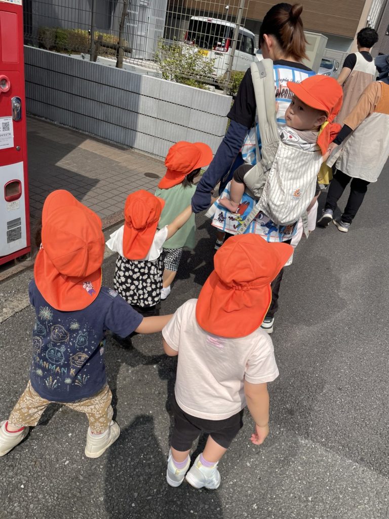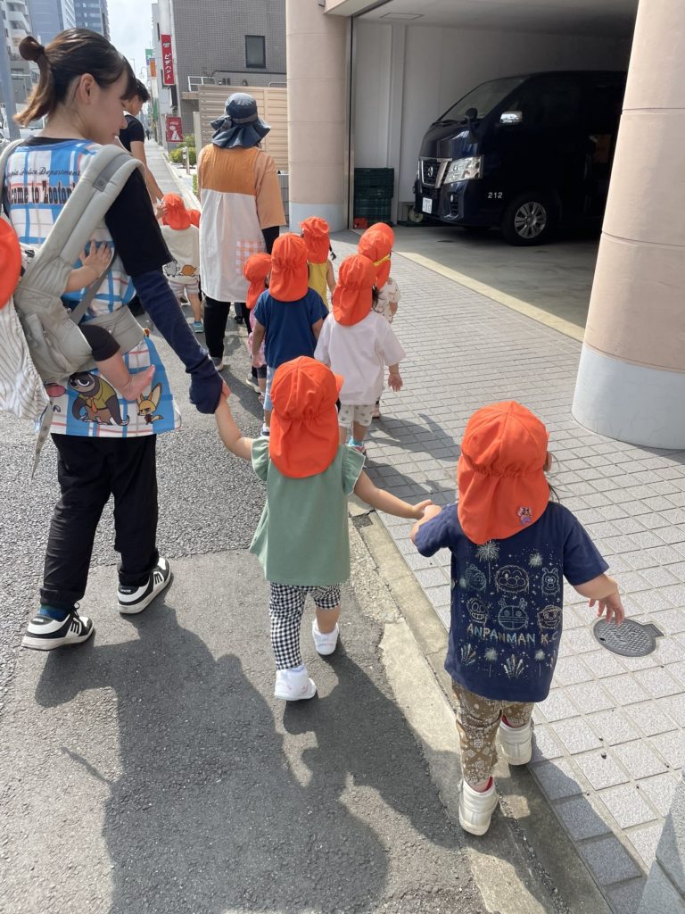 0歳児の子どもたちも消防署まで頑張って歩きました!