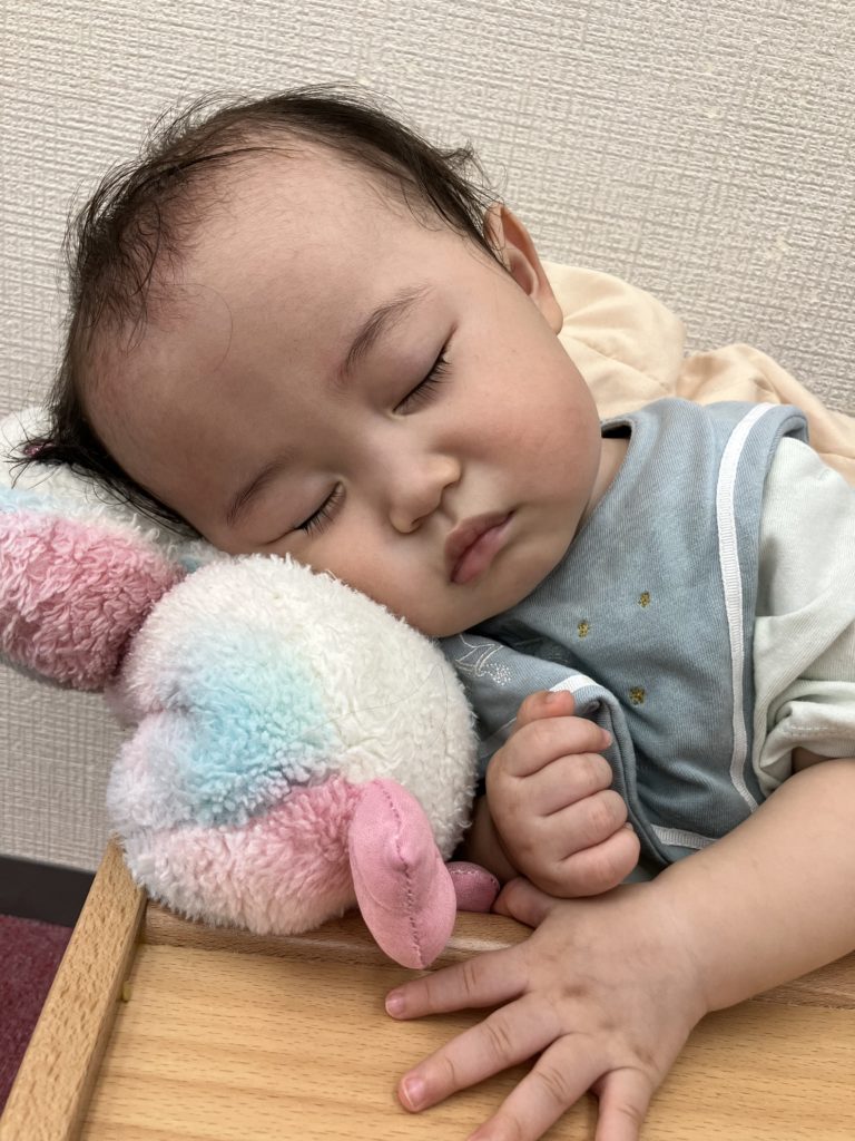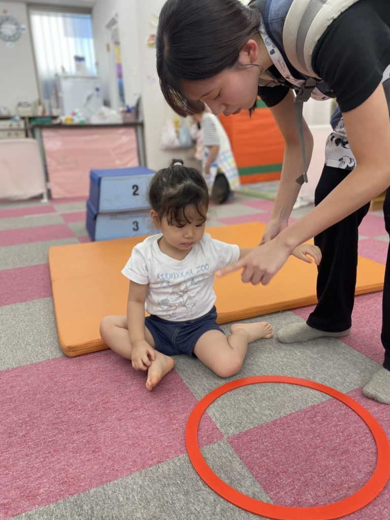 今日は沢山身体を動かす正課体育の日です! みんな楽しみにしており、順番が来るのを今か今かと待っていましたよ✨ 〜0歳児〜 👅行っちゃうよ〜😏どう??🩷 〜1歳児〜 座っ