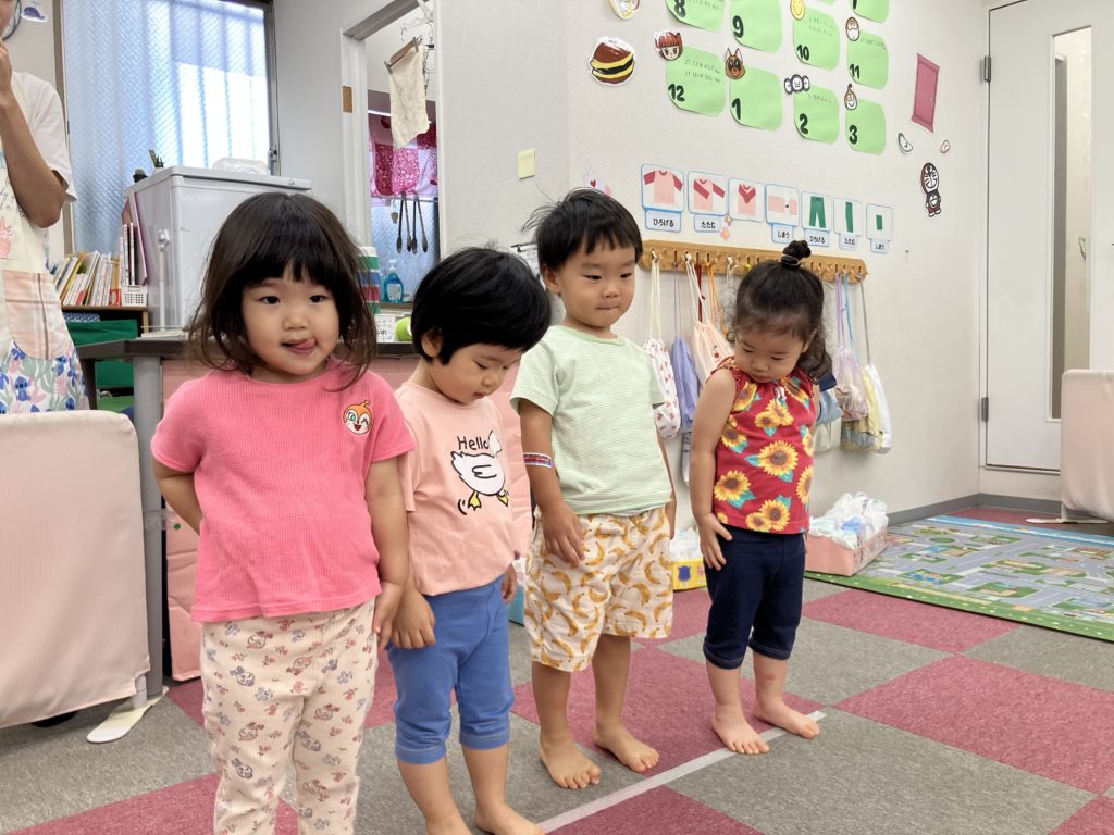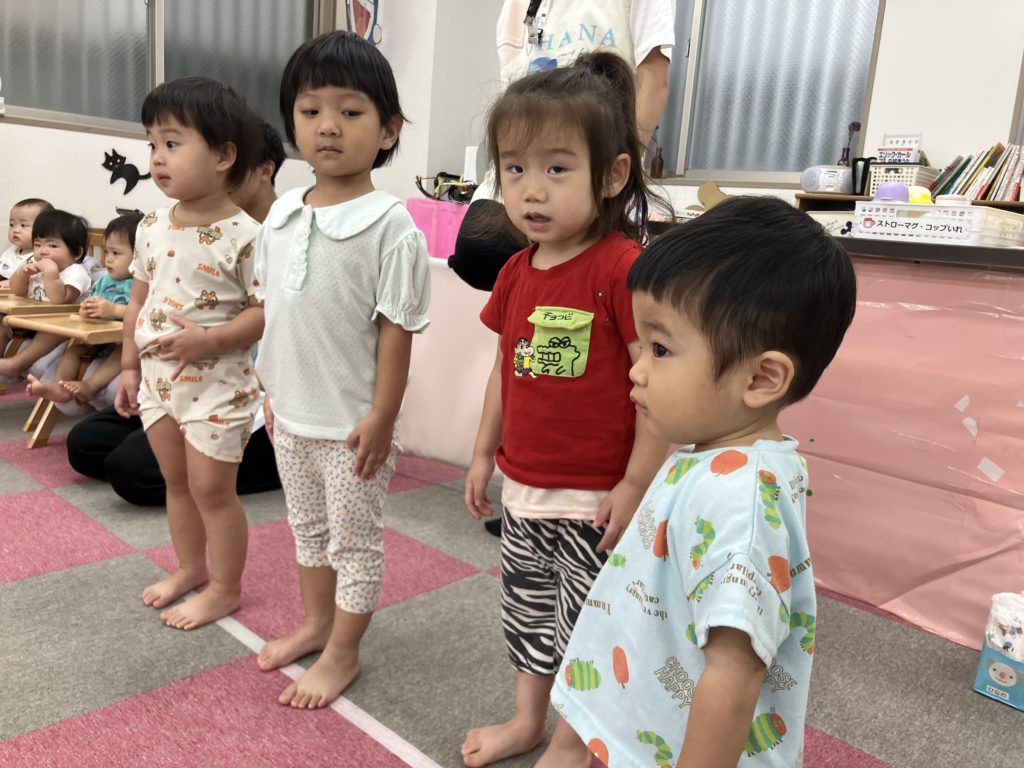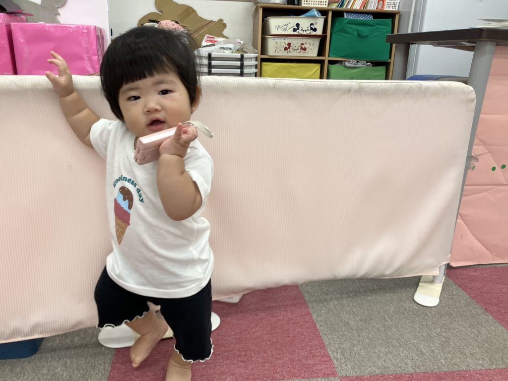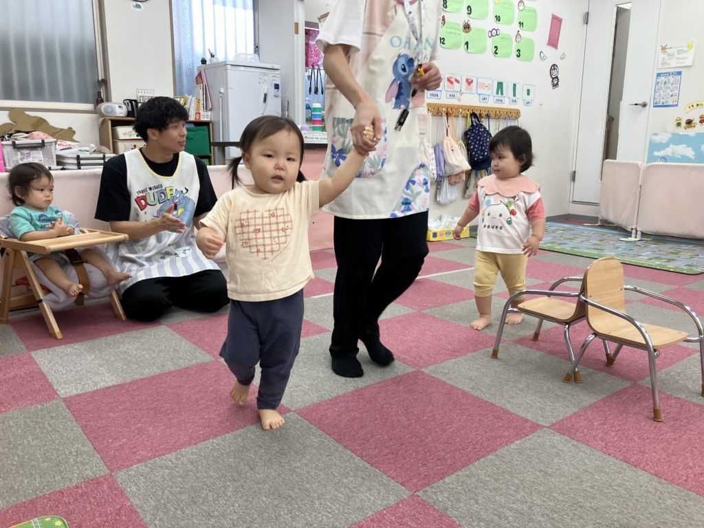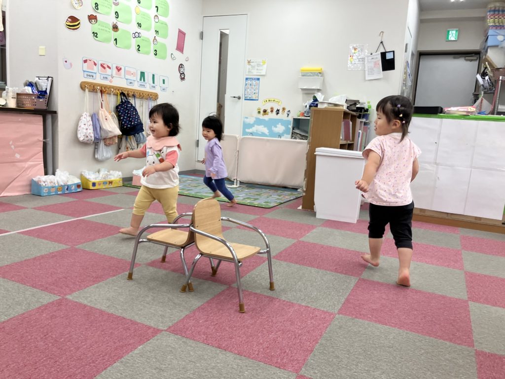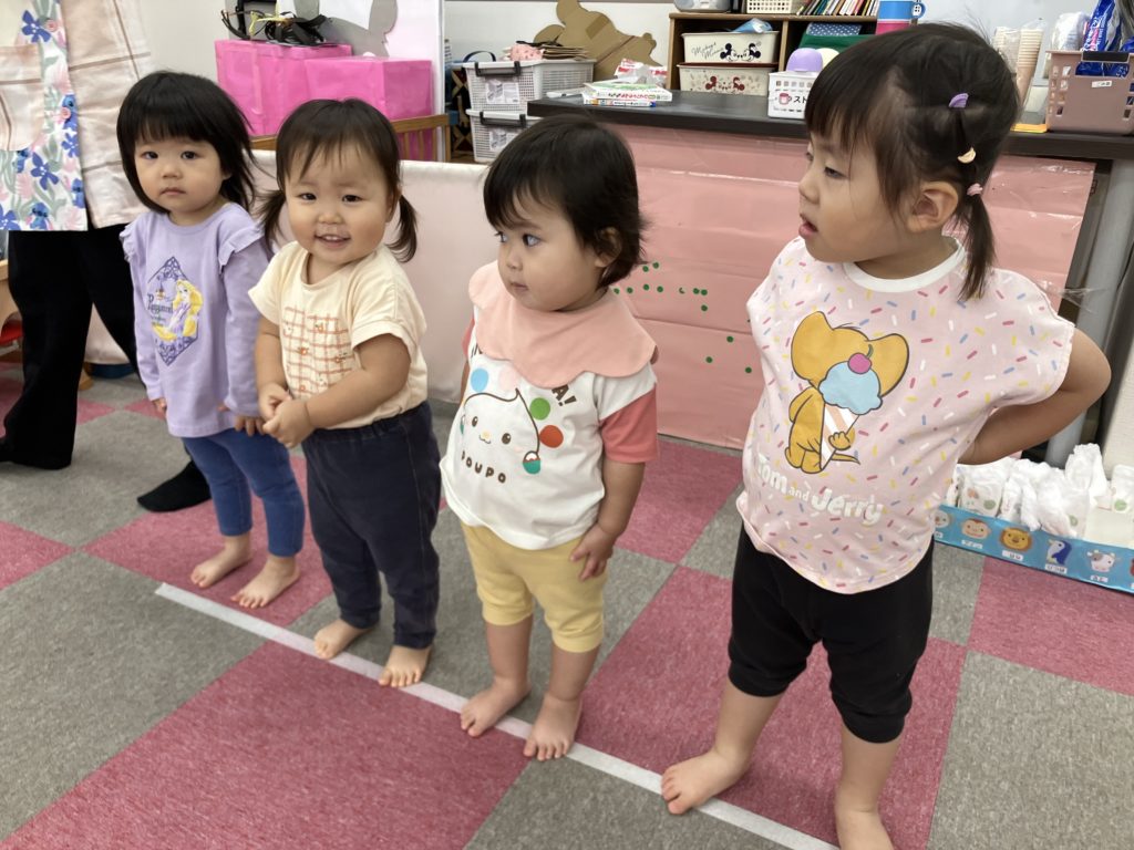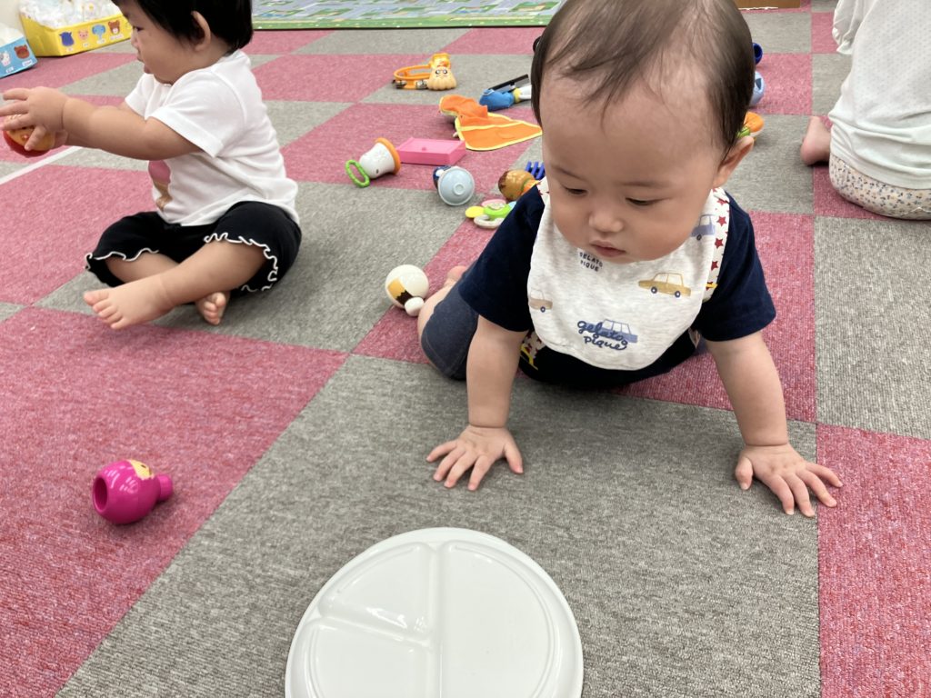 今日は沢山身体を動かす正課体育の日です! みんな楽しみにしており、順番が来るのを今か今かと待っていましたよ✨ 〜0歳児〜 👅行っちゃうよ〜😏どう??🩷 〜1歳児〜 座っ