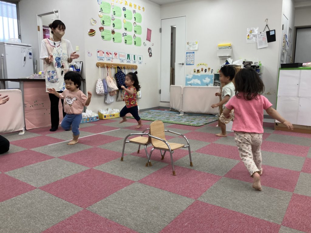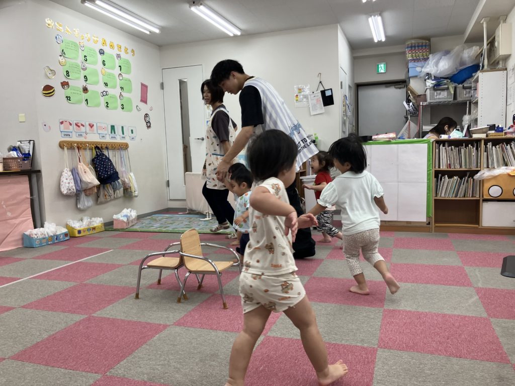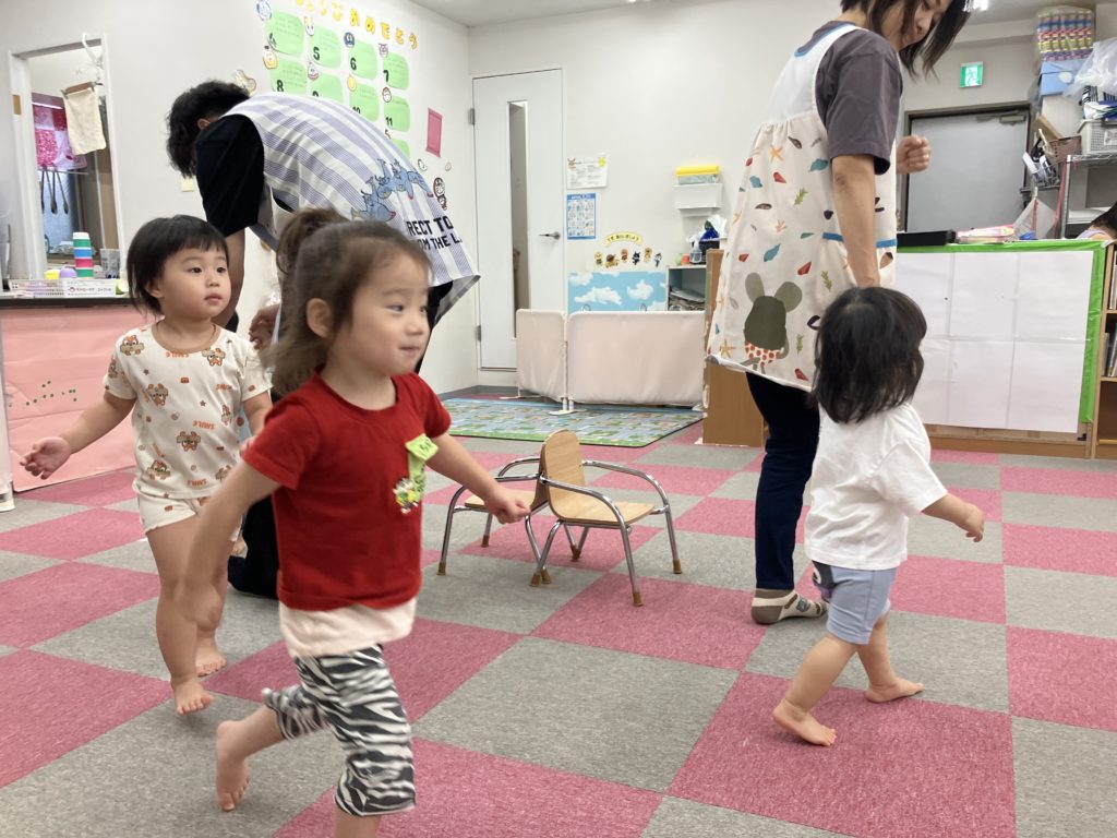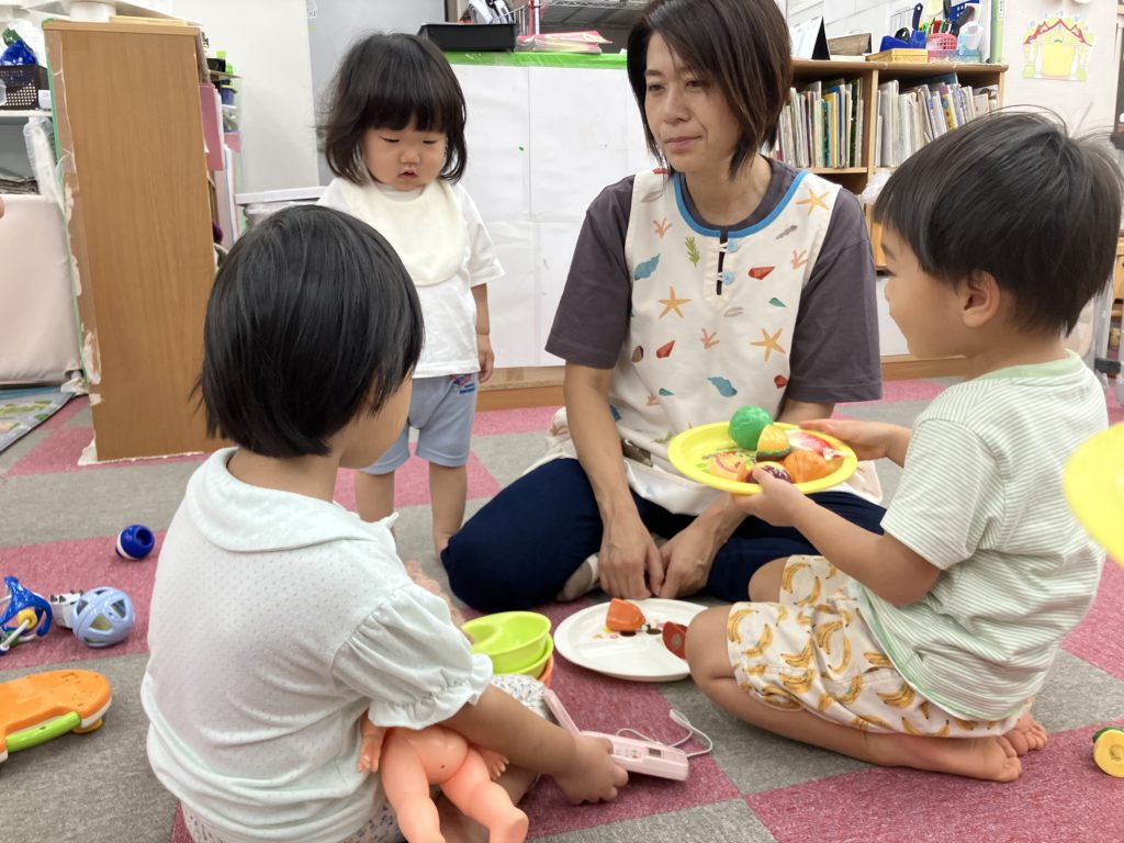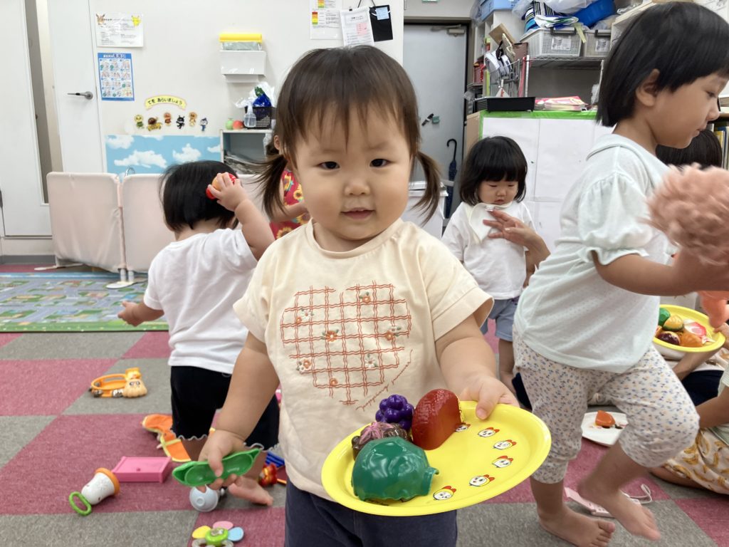 室内でかけっこした後、おままごとで遊びゆったりと過ごしました😌