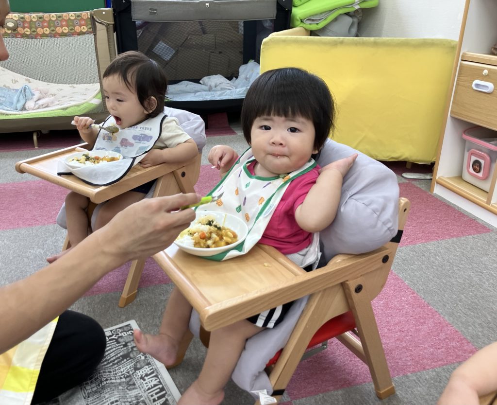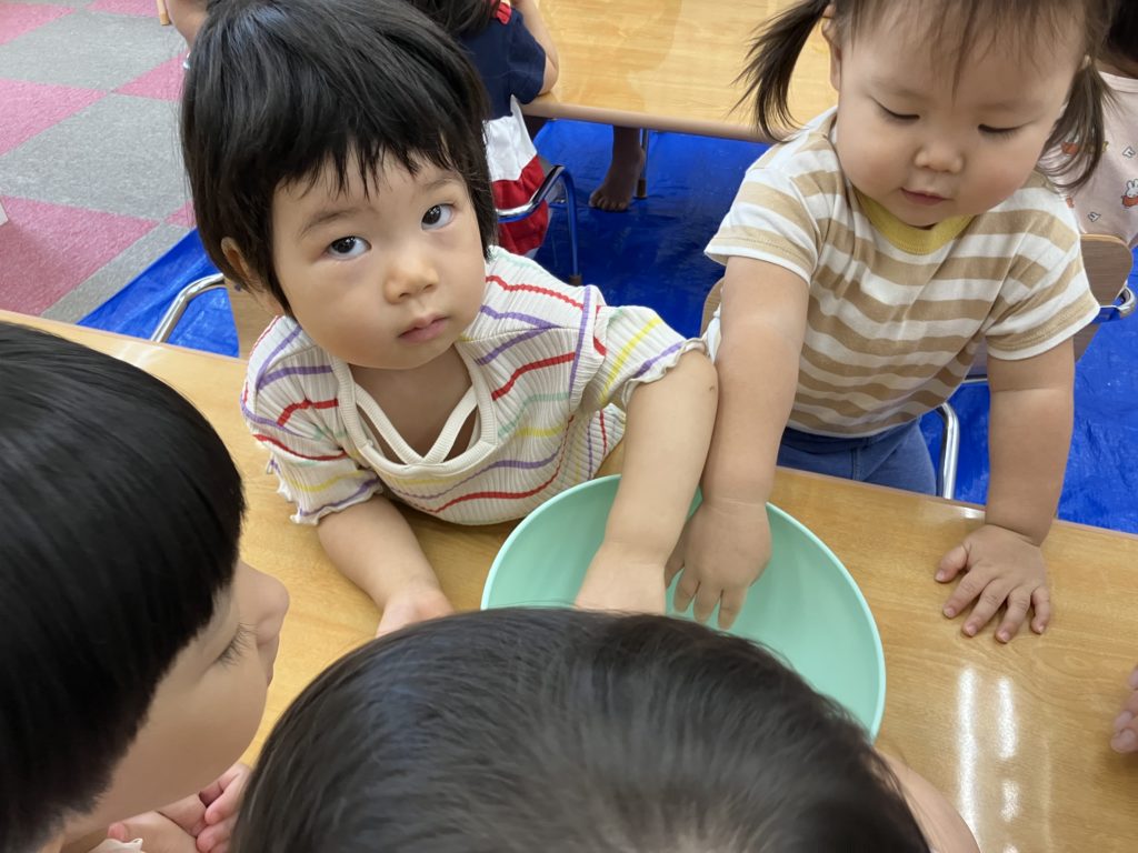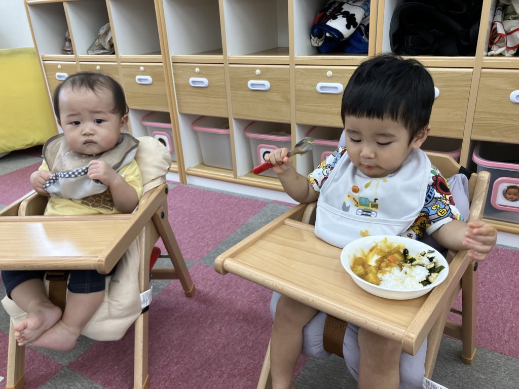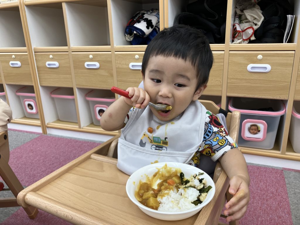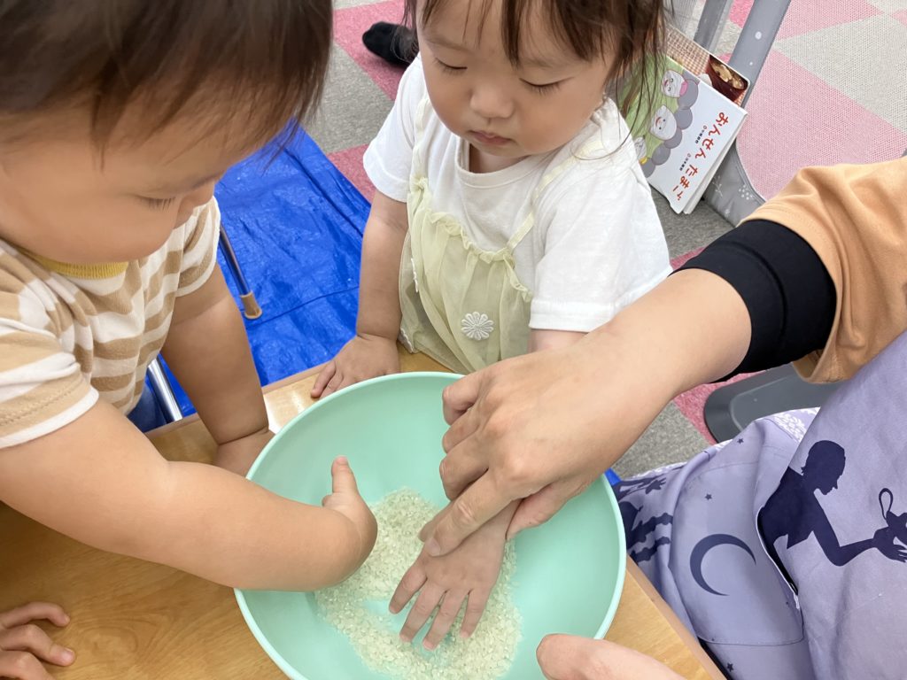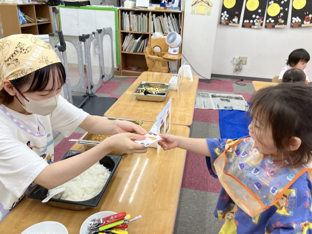 今日は朝のおやつの後に、米とぎをしました。お昼には子どもたちが研いでくれたお米がカレーに変身して、バイキング式での給食になりました😋🍴