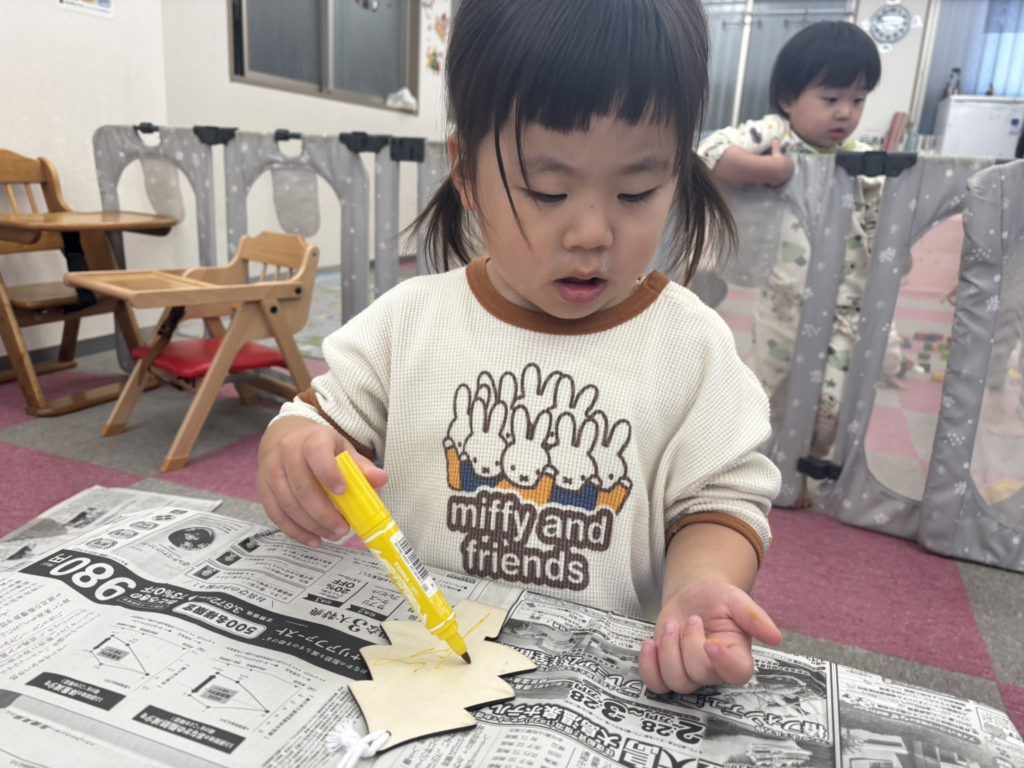 週の初めは室内でゆったりと過ごしました♪クリスマスツリーのオーナメント作りをし、早めのクリスマスを感じました🎄🔔