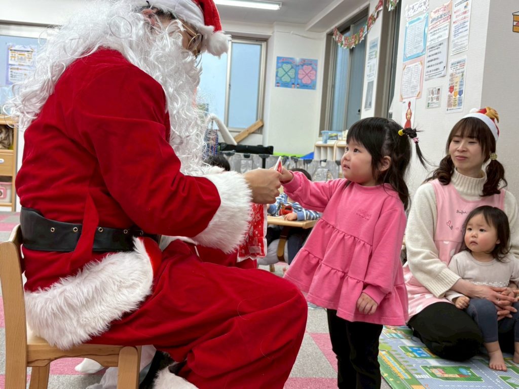 サンタ役は2歳児の保護者の方にご協力頂きました!お忙しい中、お時間を作っていただき本当にありがとうございました🙇🏻‍♀️💕