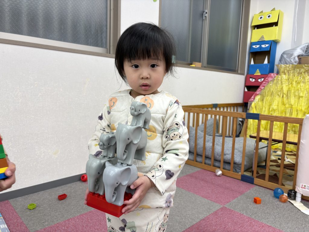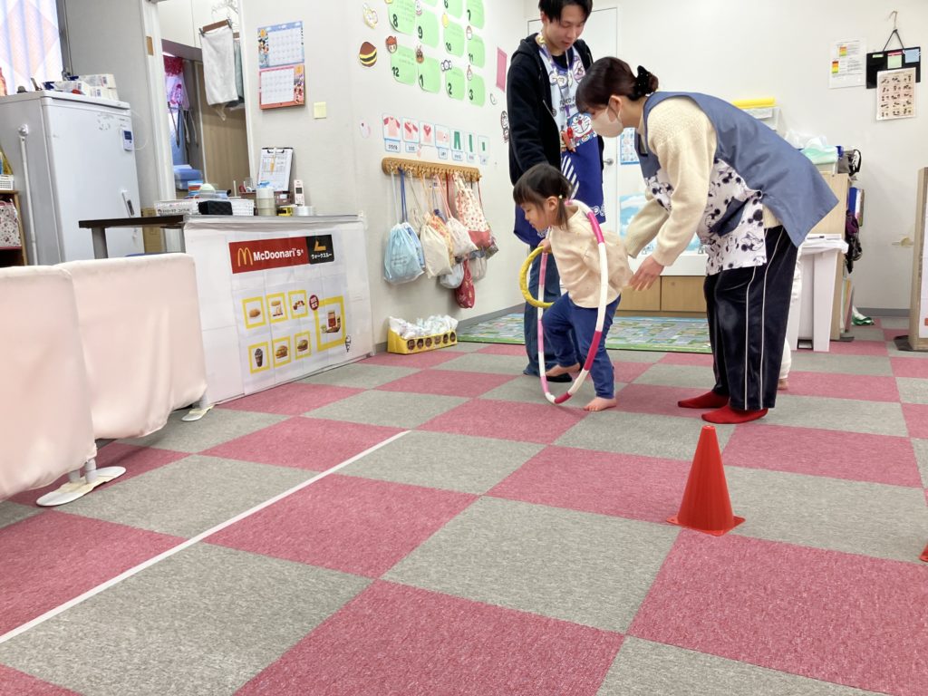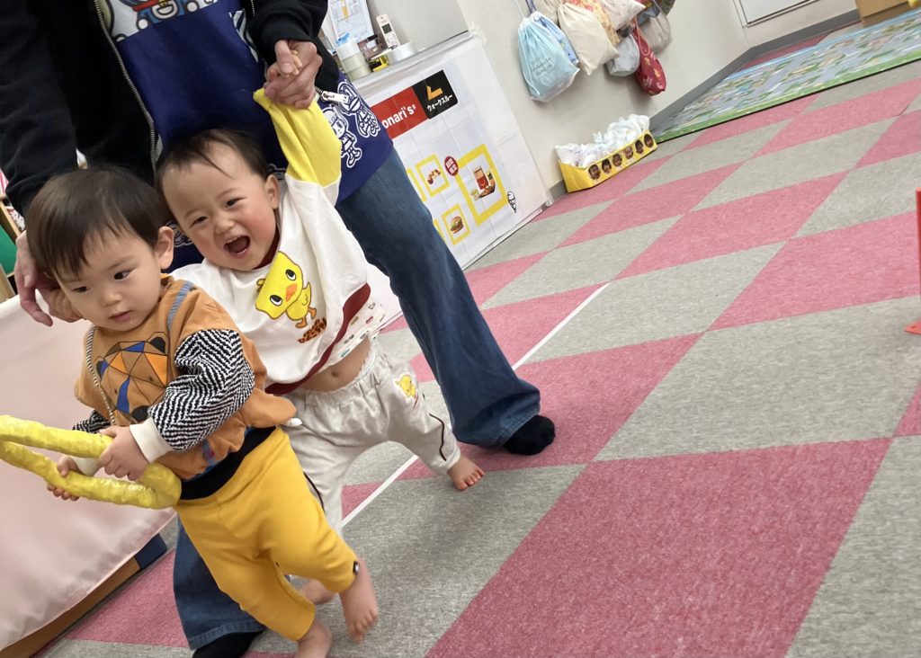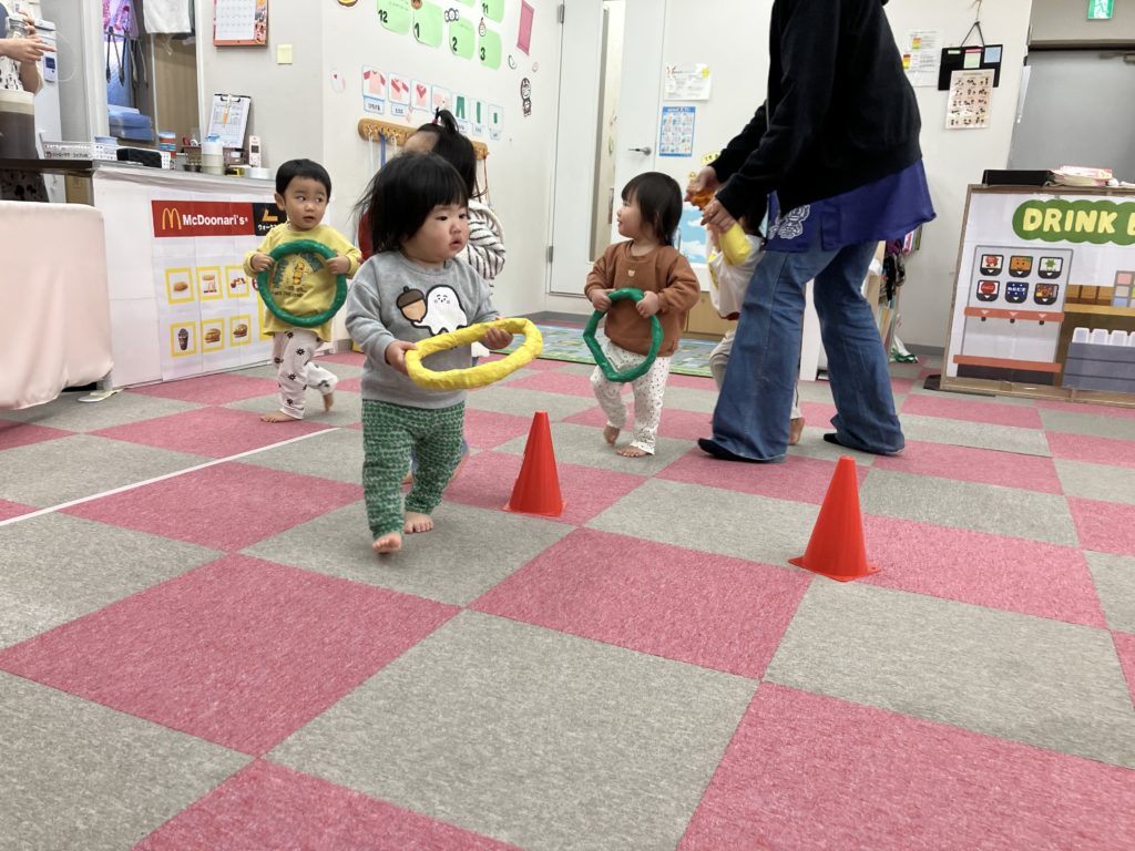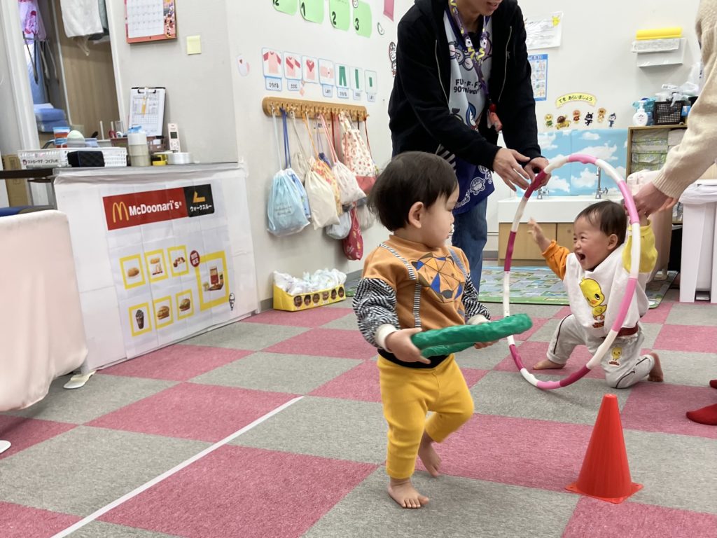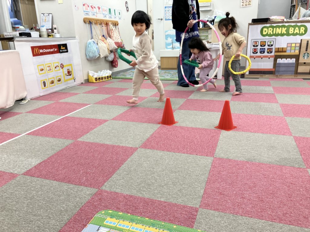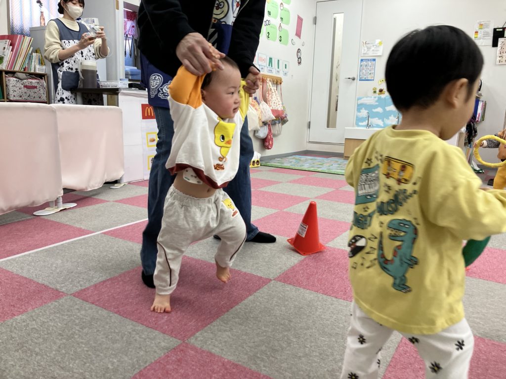週末の疲れも見られ、朝から賑やかだった今日は室内でかけっこをしました。バトンをもってリレー気分で走りました🏃♀️💨
