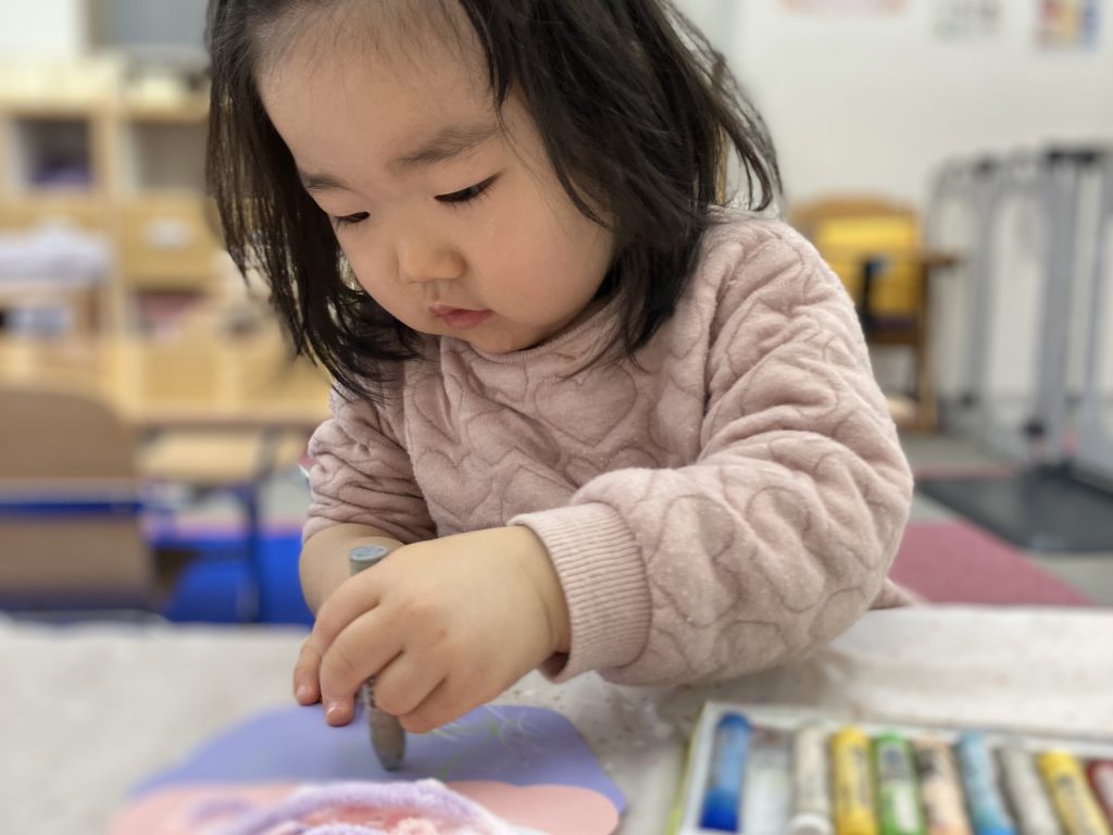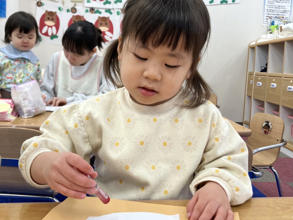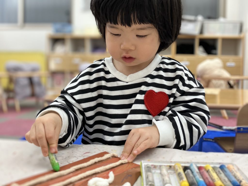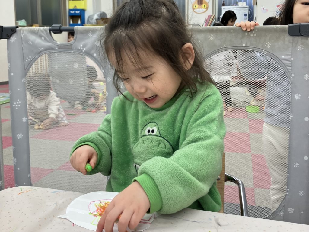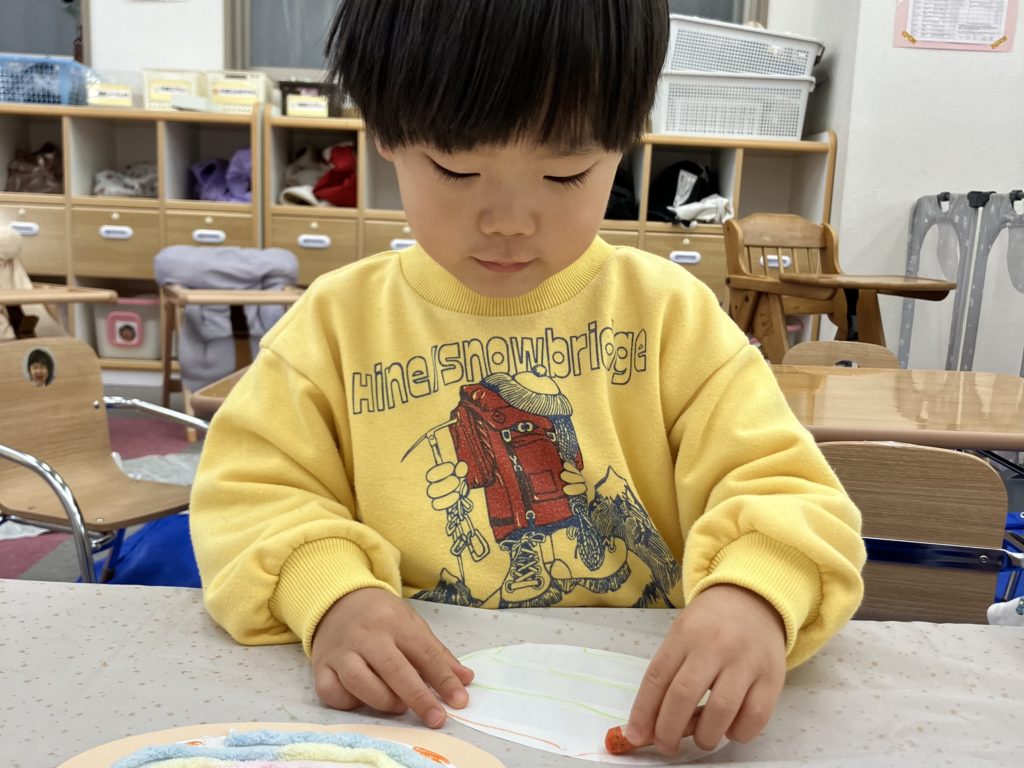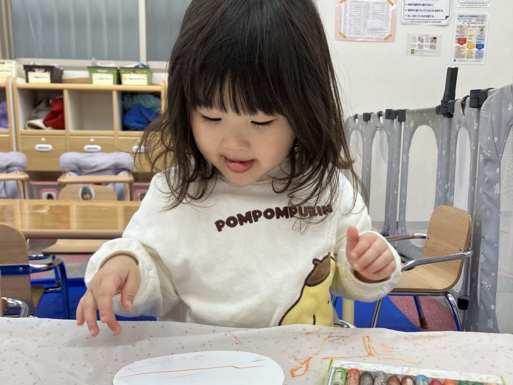先週から今日までの間で2月の製作も行いました。クレヨンや絵の具を用いてたくさんお絵描きできました🎨