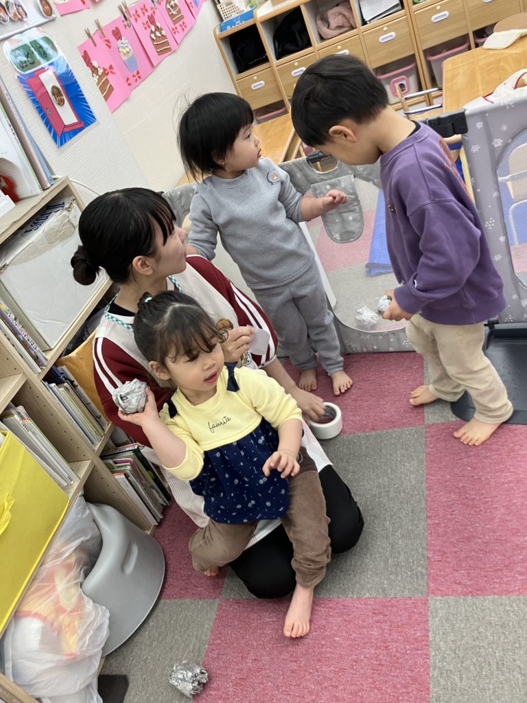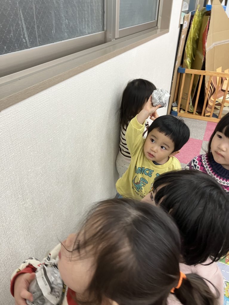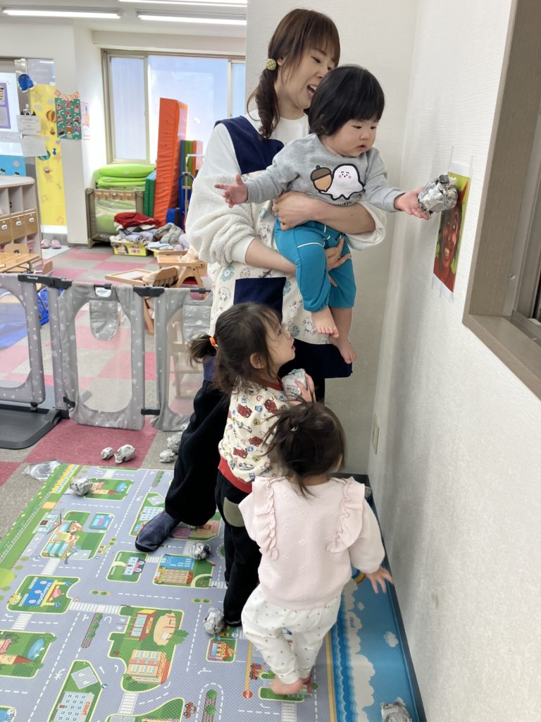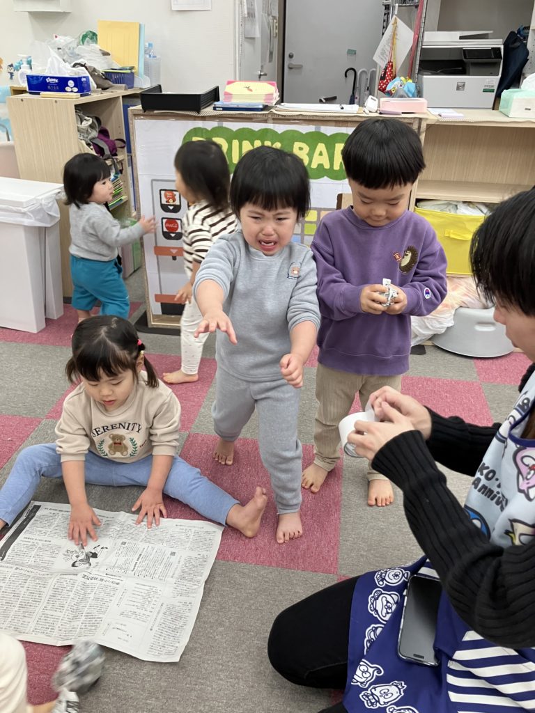 今日は明日の節分に向けて、新聞紙で鬼を退治する時に使う豆を作りました👹✨その後は実践練習も行い、鬼退治に気合い十分な子どもたちです💪🏻✨
