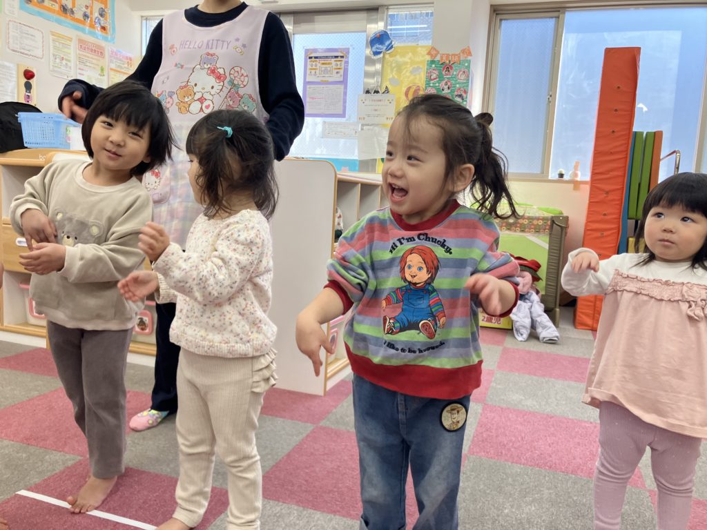 👹今年もこの日がやって参りました。👹 鬼の箱めがけてボールを投げたり、金棒を持って鬼を退治しましたよ。 鬼は外ーおおきく振りかぶって 楽しく遊んでホッと一息ついたその時…