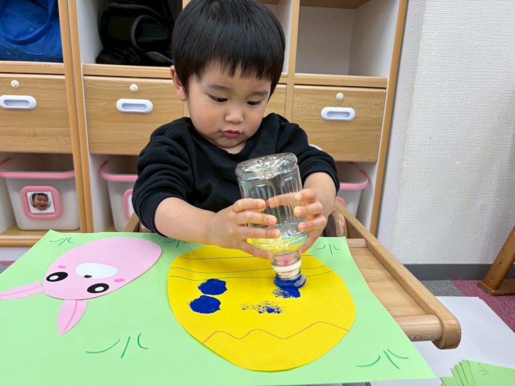 4月の製作は「イースター」でした✨スタンプをして卵の柄を可愛らしくしました😍真剣に取り組む姿をご覧ください😌🩷