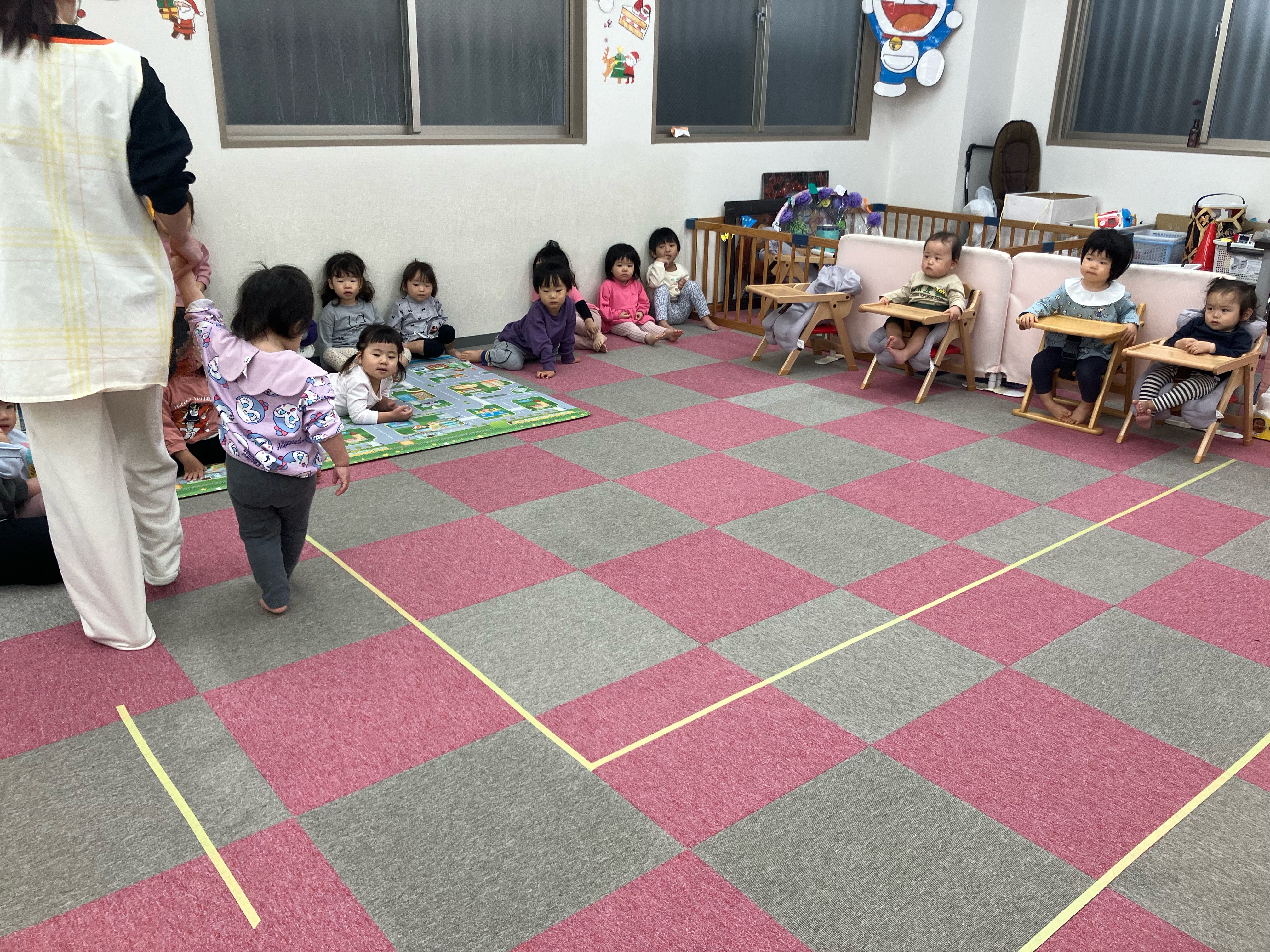 今日はお部屋で、線からはみ出さないように歩くゲームをしました!手を繋いだり、左右確認をしたり散歩の練習にもなり […]