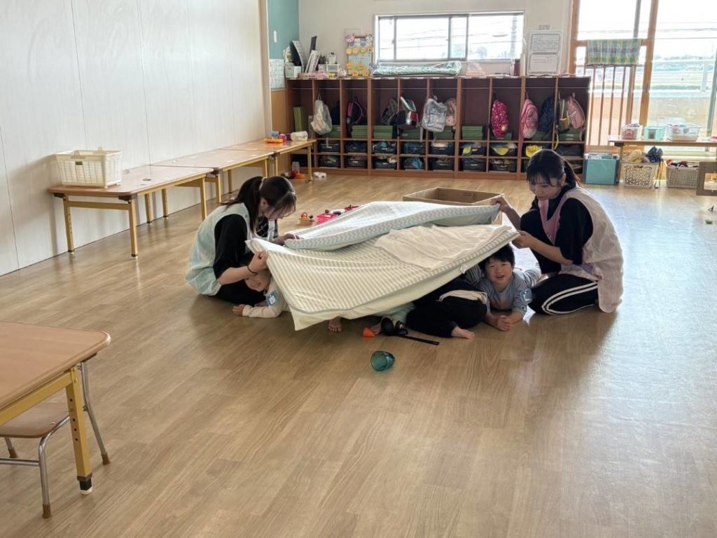 今日は、避難訓練でした!今年度初めてということもあり、乳児クラスでは放送に驚いて泣いているお友だちが多かったです😢