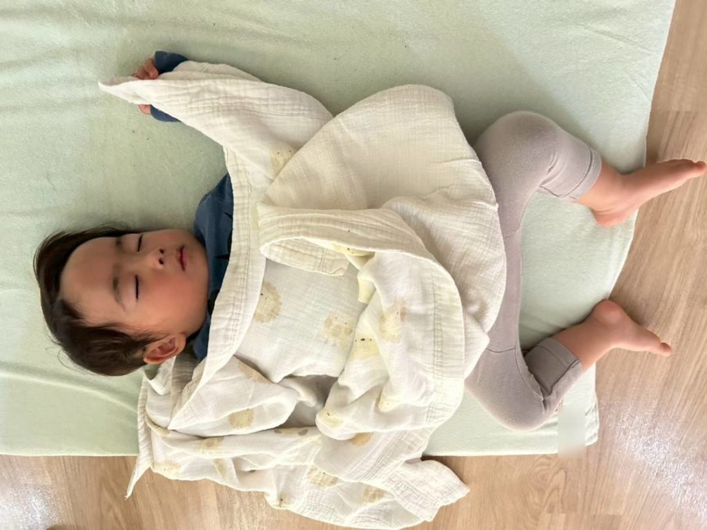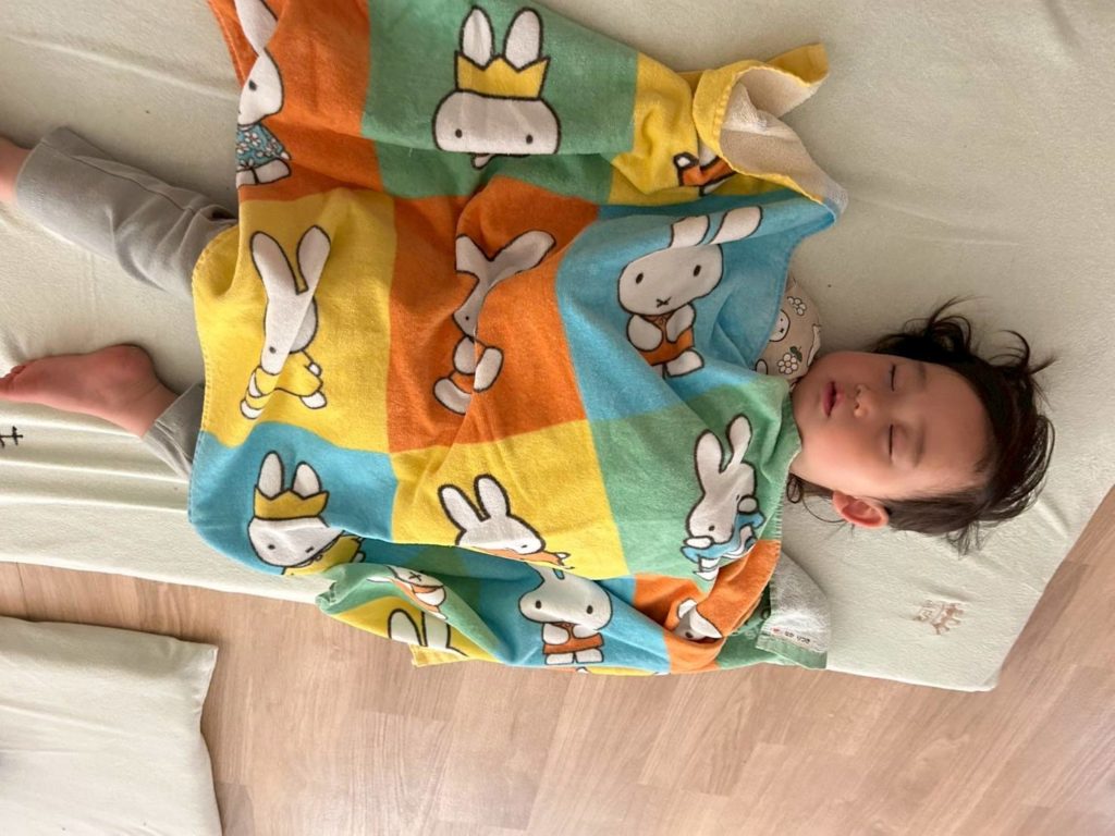 たくさん遊んだ後は、ご飯を食べてぐっすり眠っていましたよ🌙