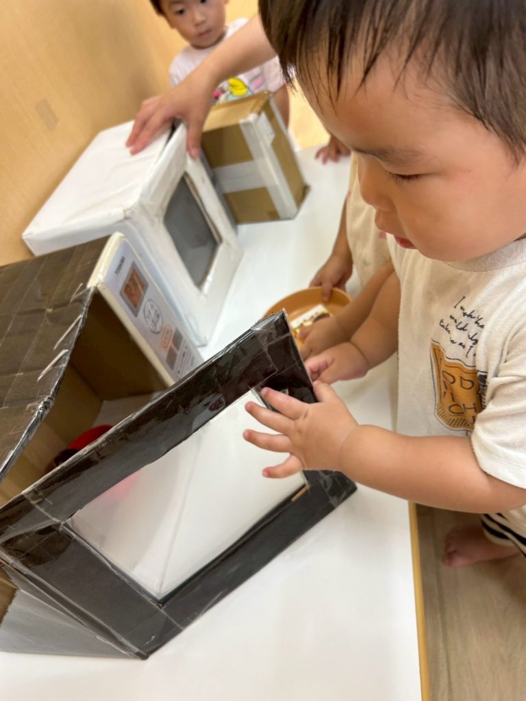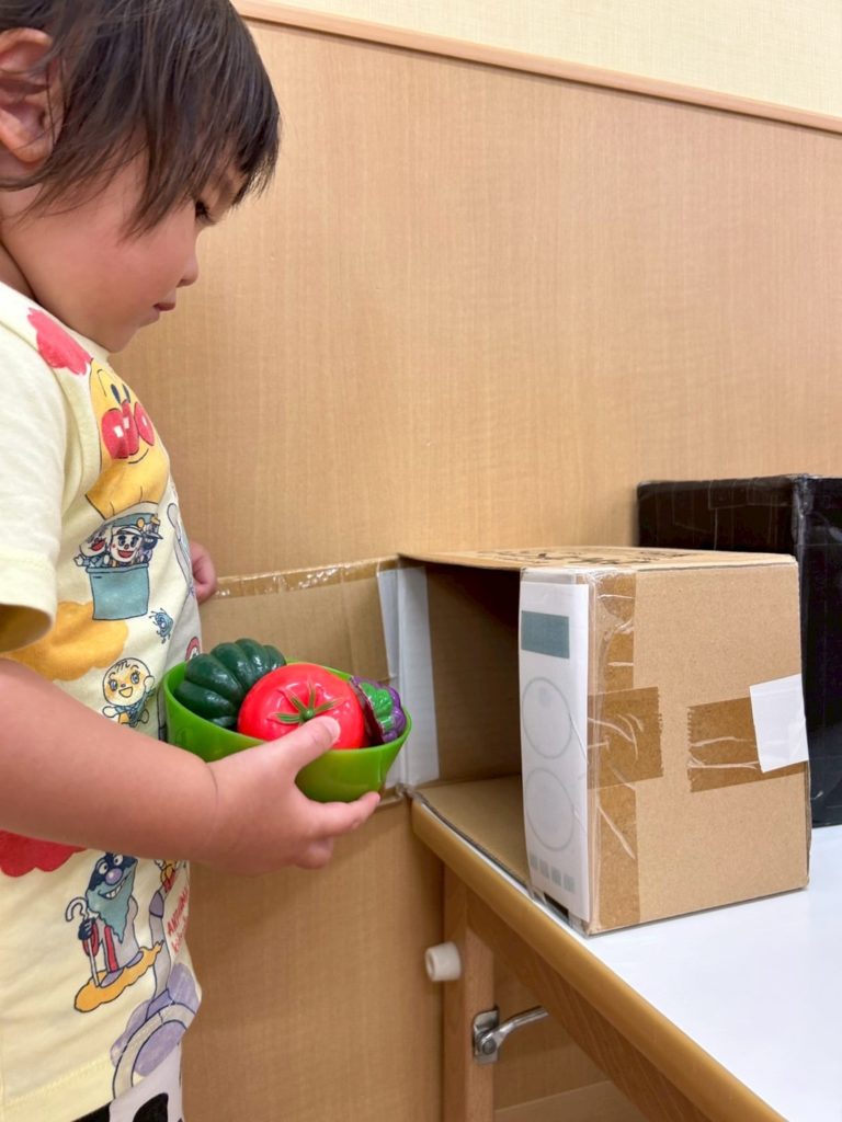 ほし組のお友だちは、おままごと遊びで電子レンジを使ってみました♬