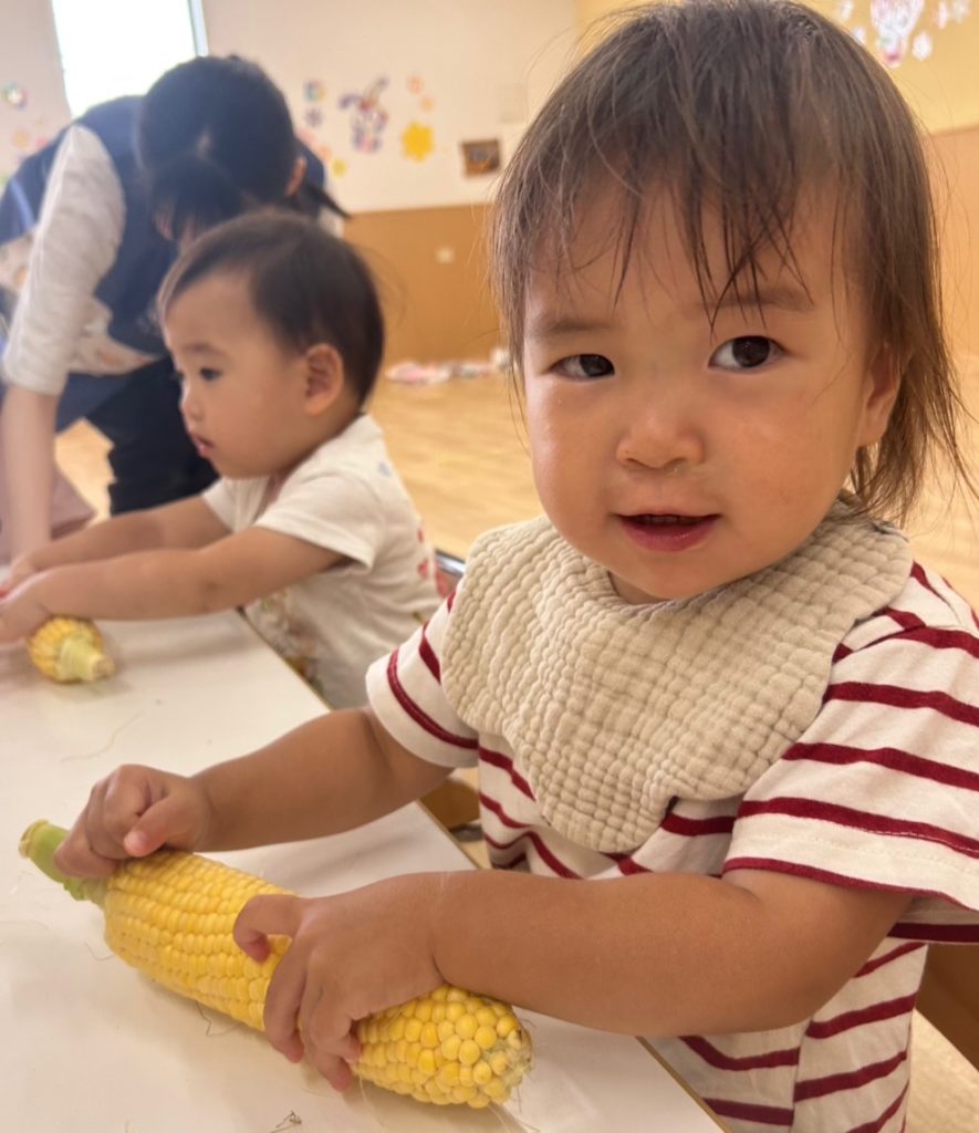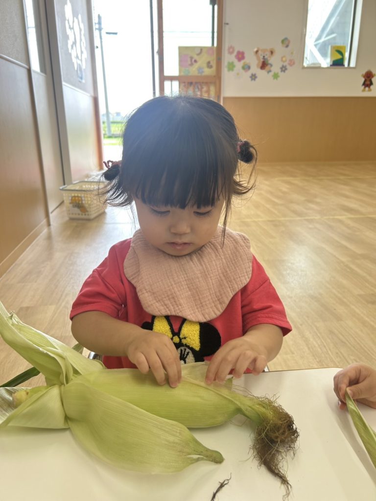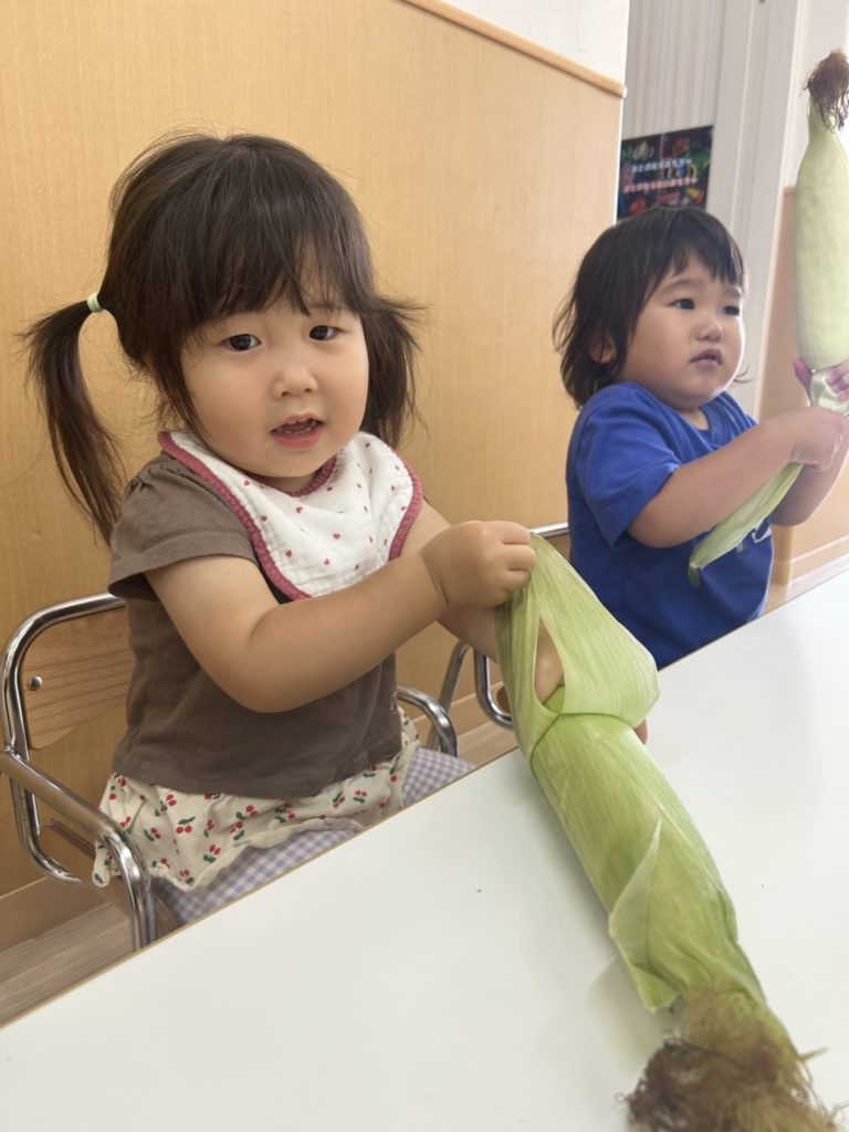 今日は、ほし組のお友だちがとうもろこしの皮むきをしてくれました☺