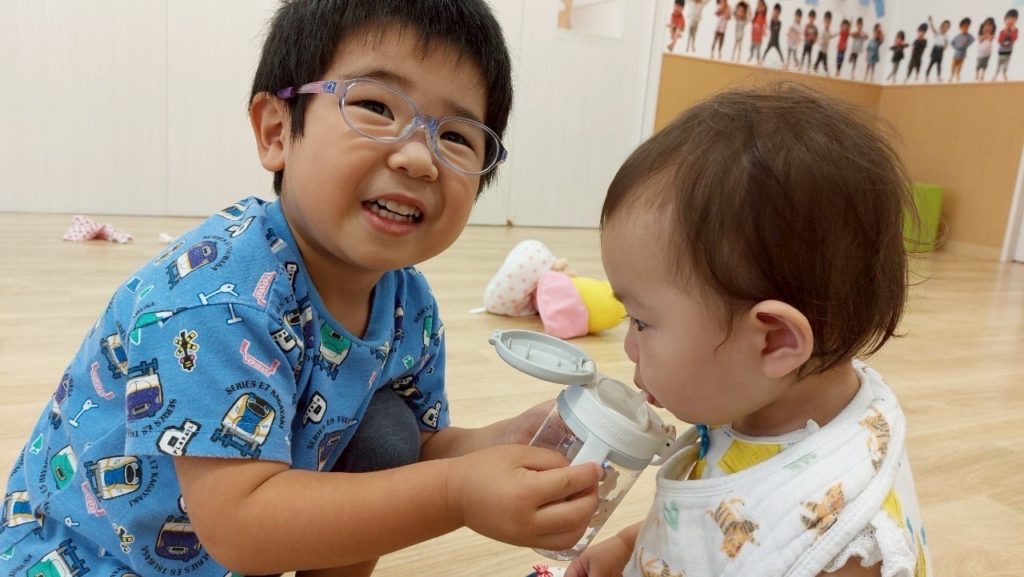 今日は うみ組のクラスに、はな組の赤ちゃんが遊びに来てくれました✨