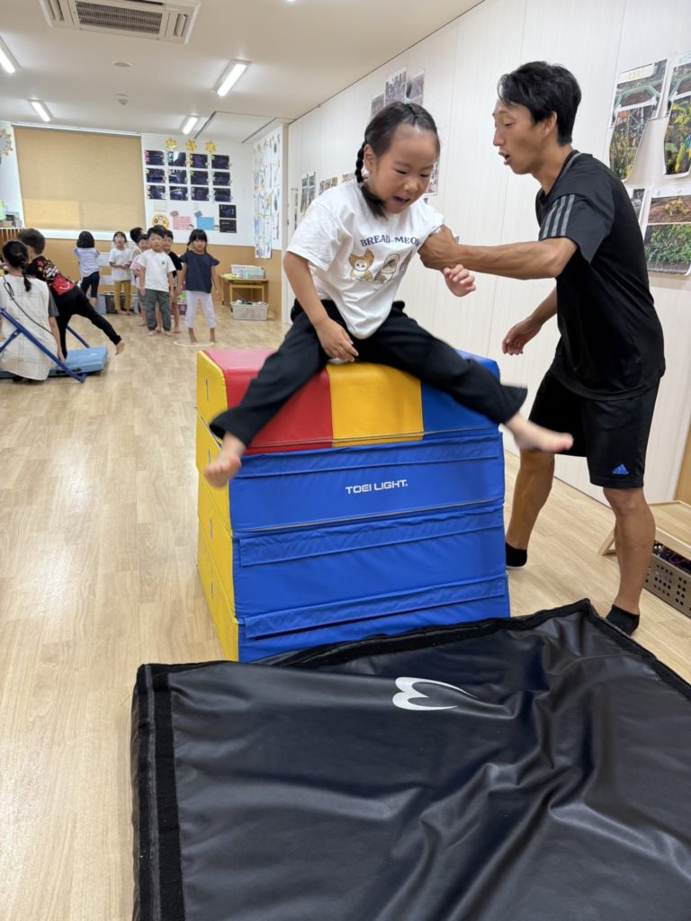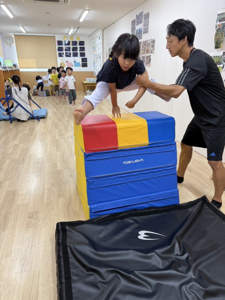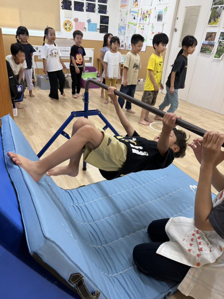 現在ゆめ組では、正課体育の跳び箱と鉄棒を運動会で披露するために