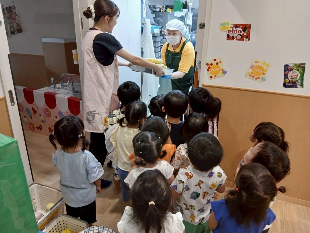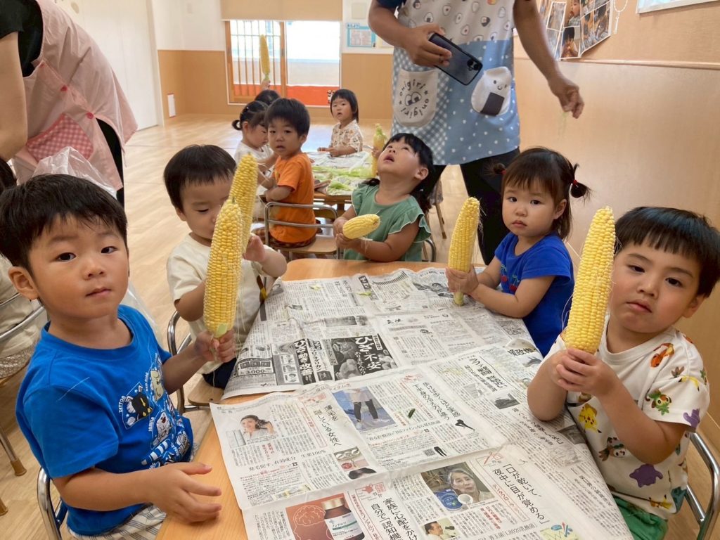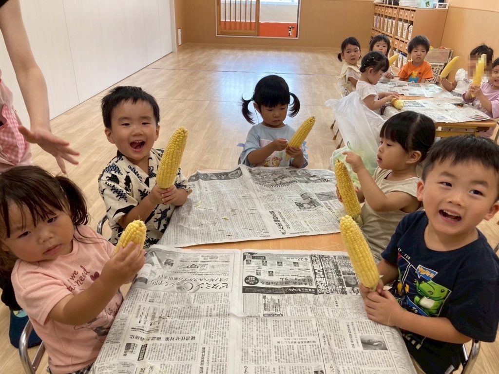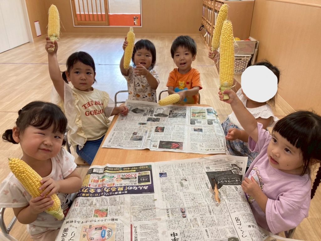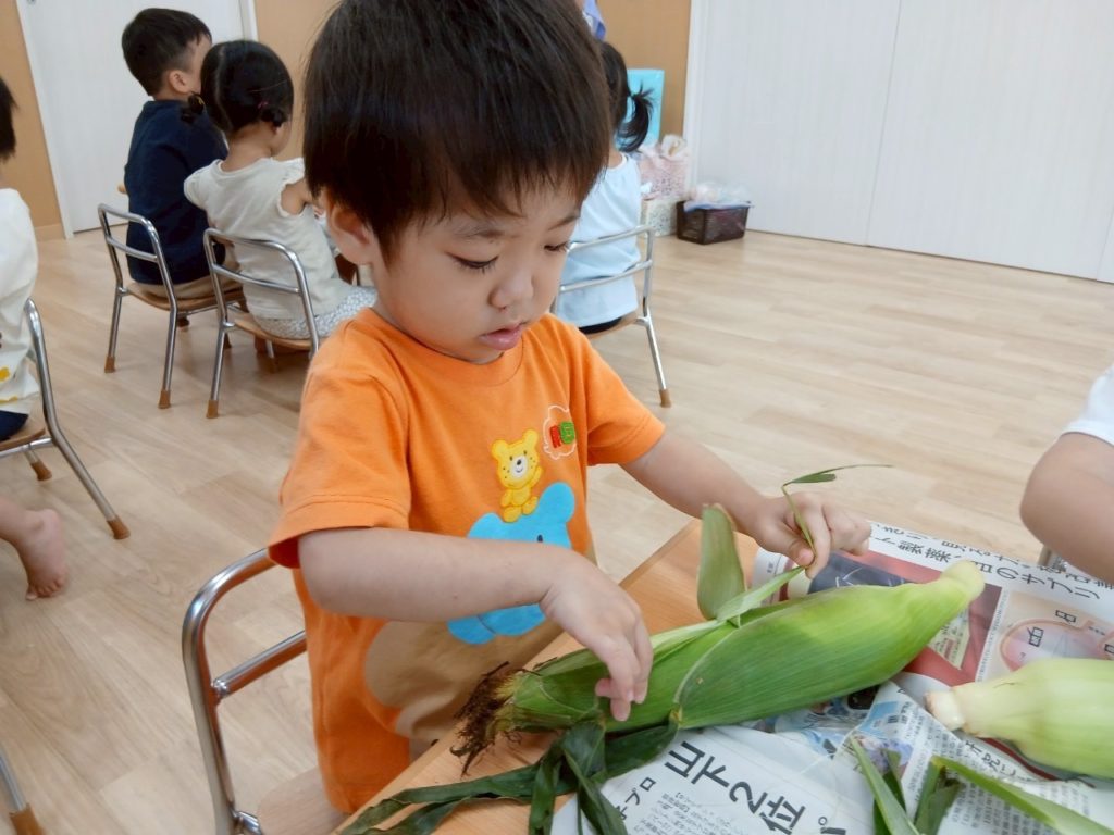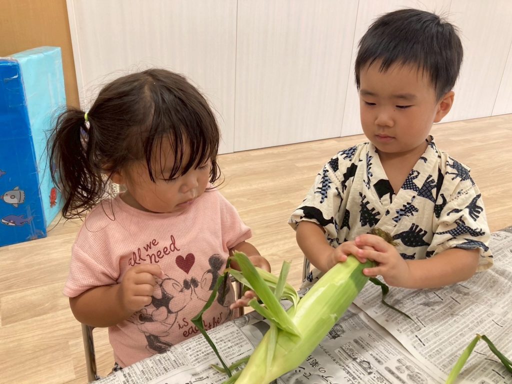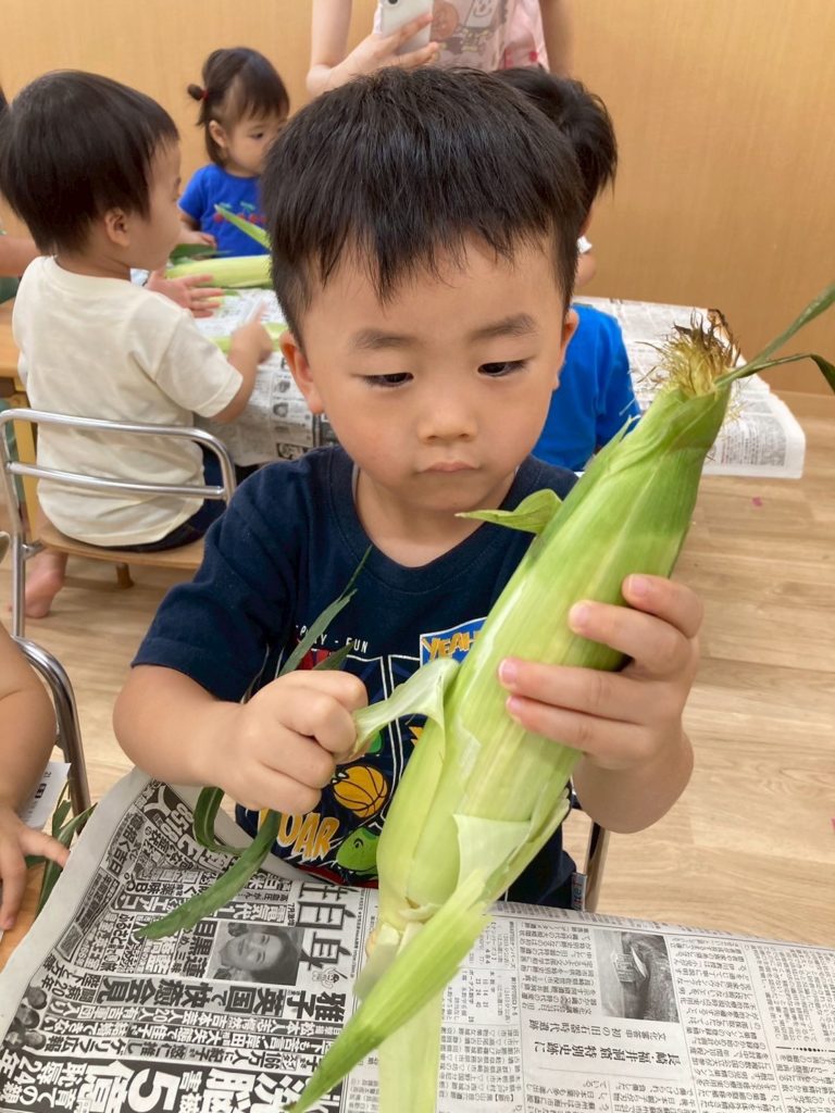 お友だちと順番を守ってとうもろこしの皮をむくことができました☺