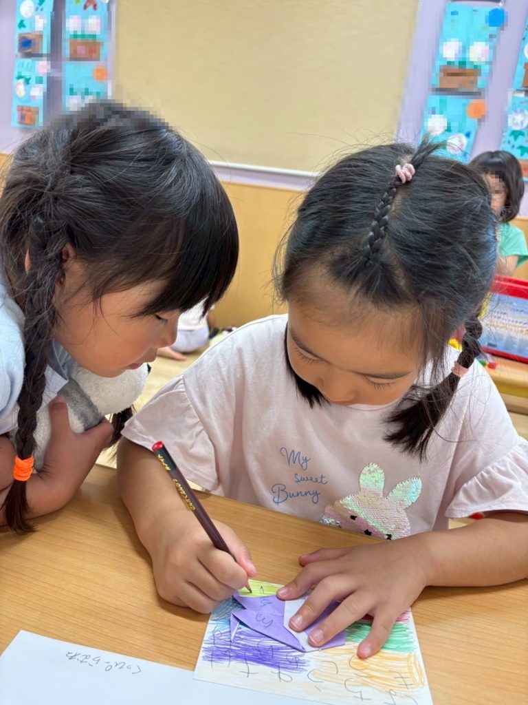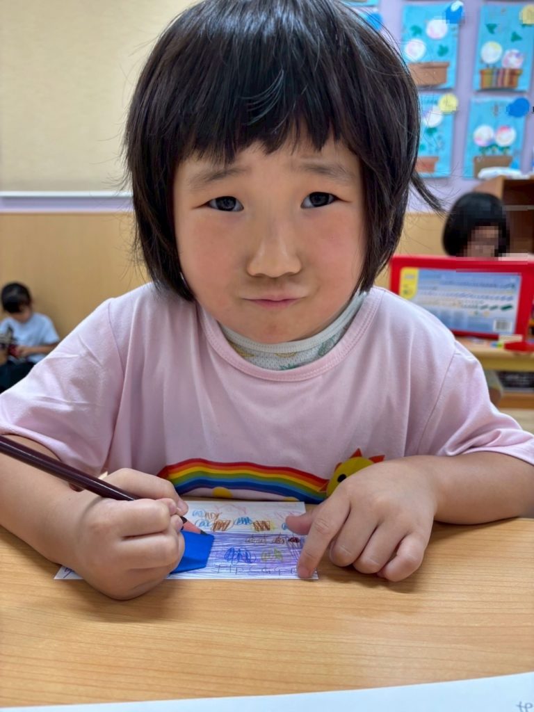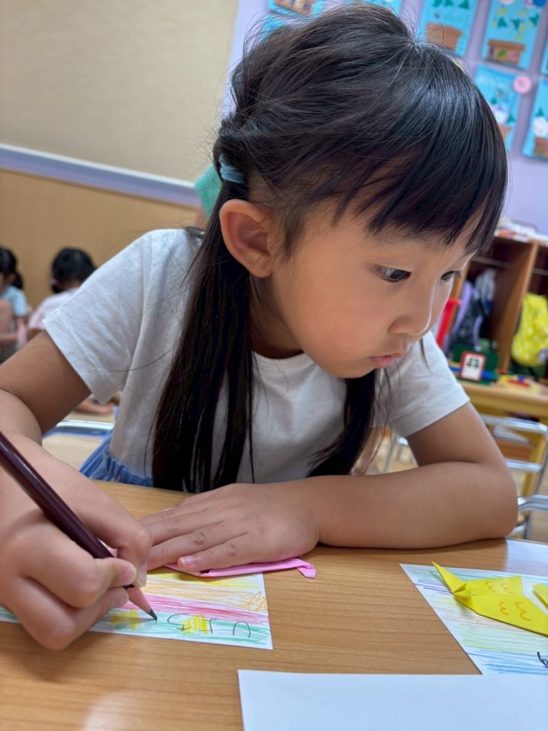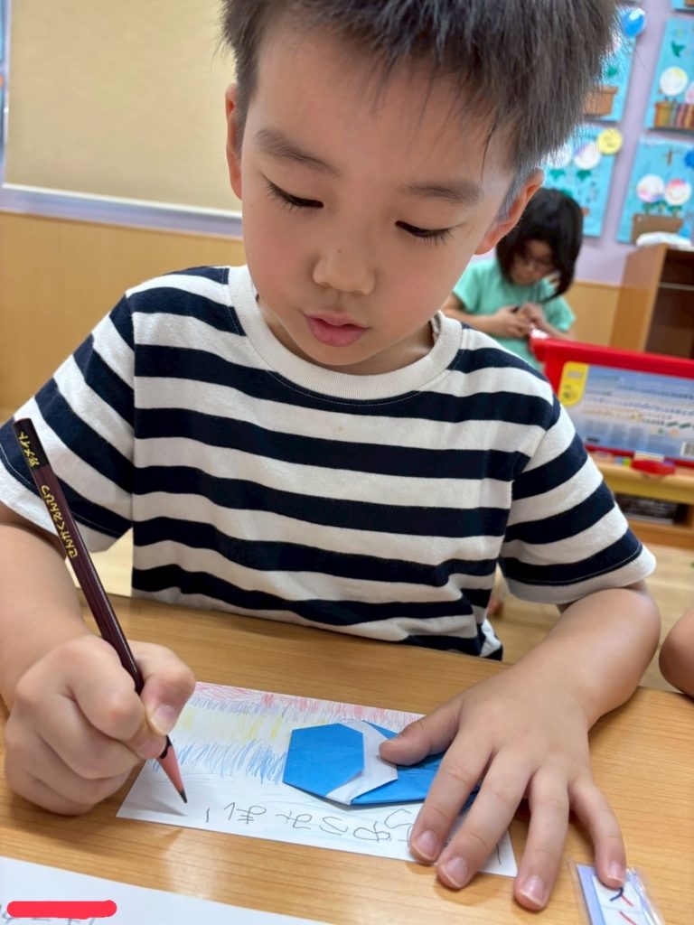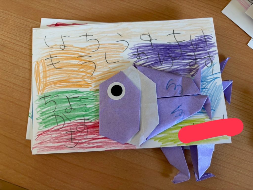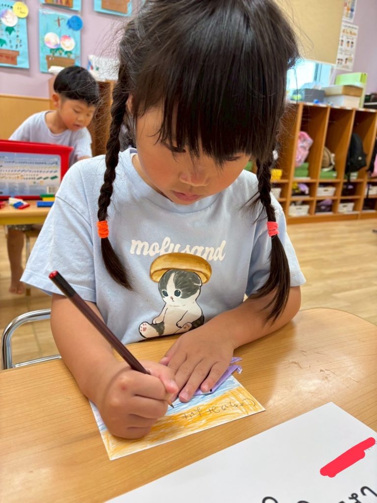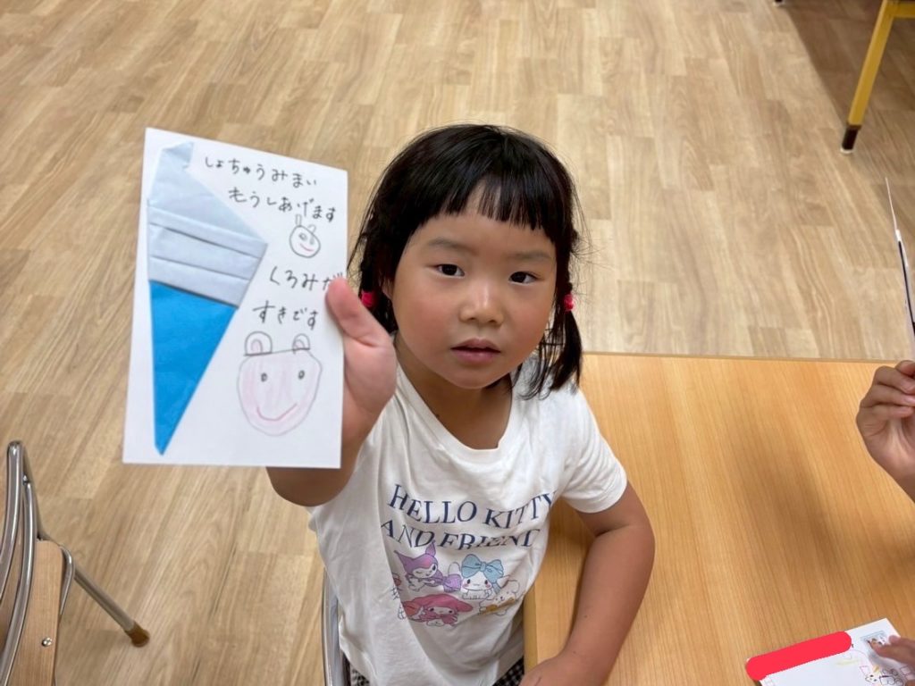 自分の名前と好きな食べ物や色などをお手紙に書いたそうですよ!