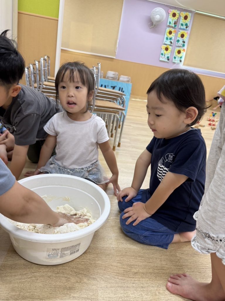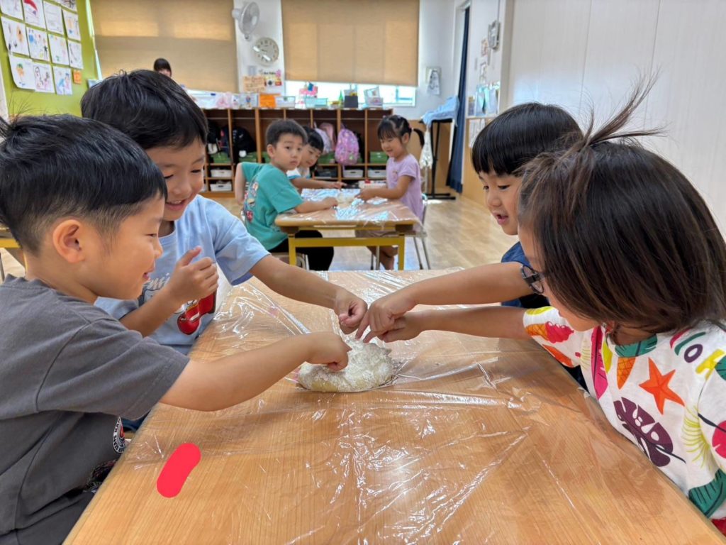 朝から小麦の香りがするなと思うと、先生たちがこねこね小麦粉粘土の準備中…