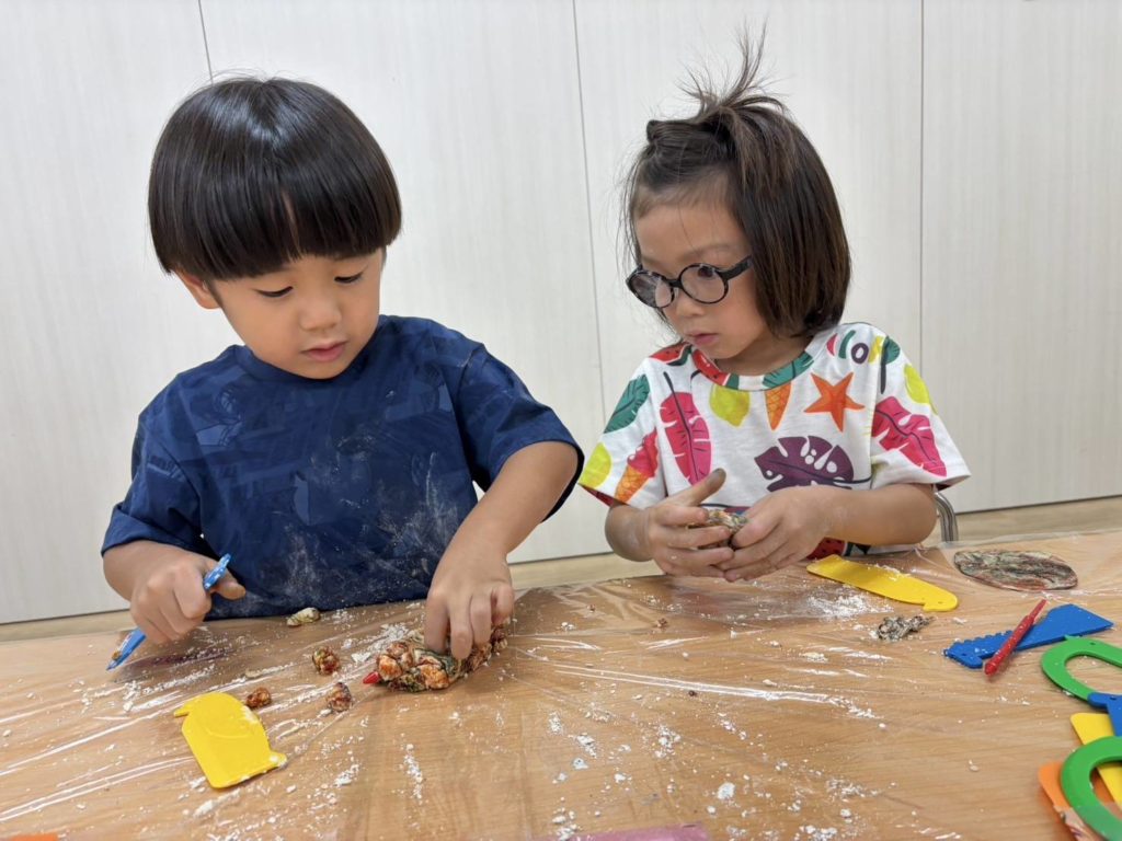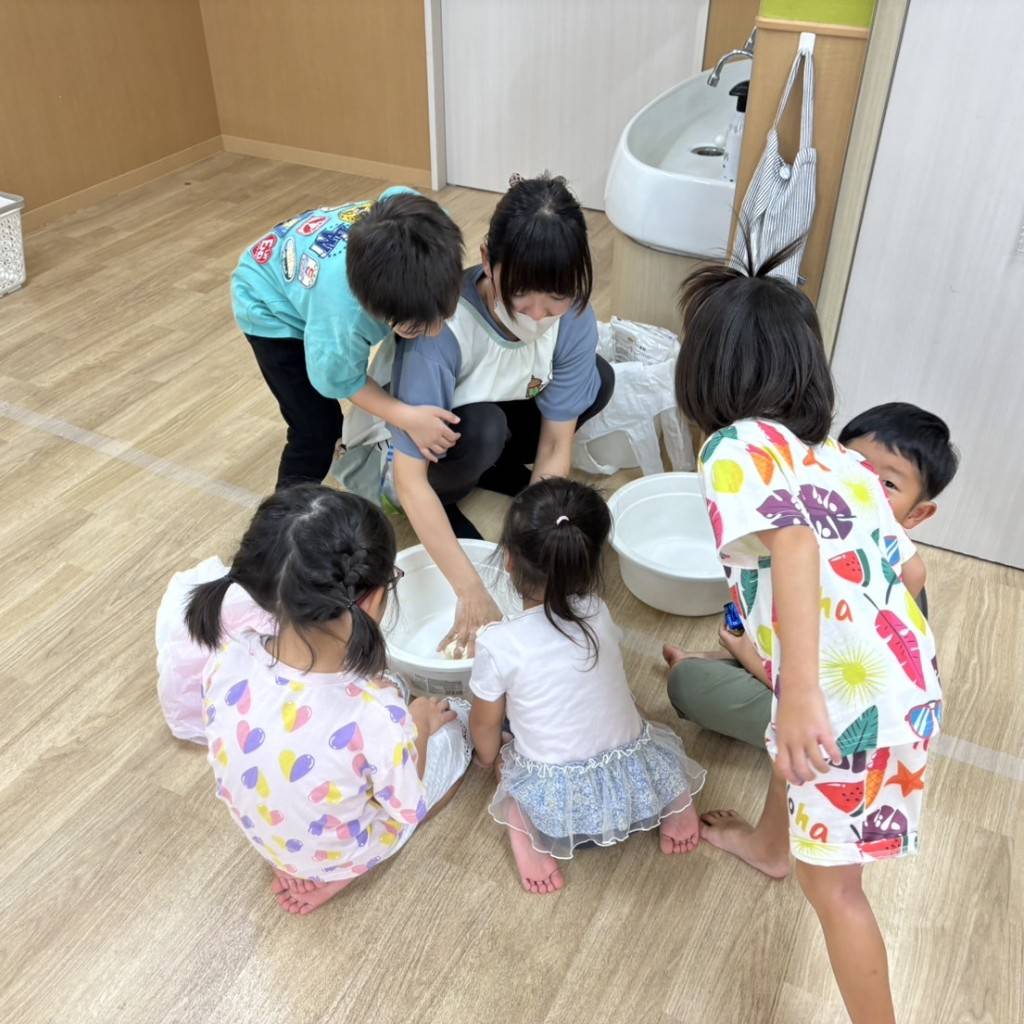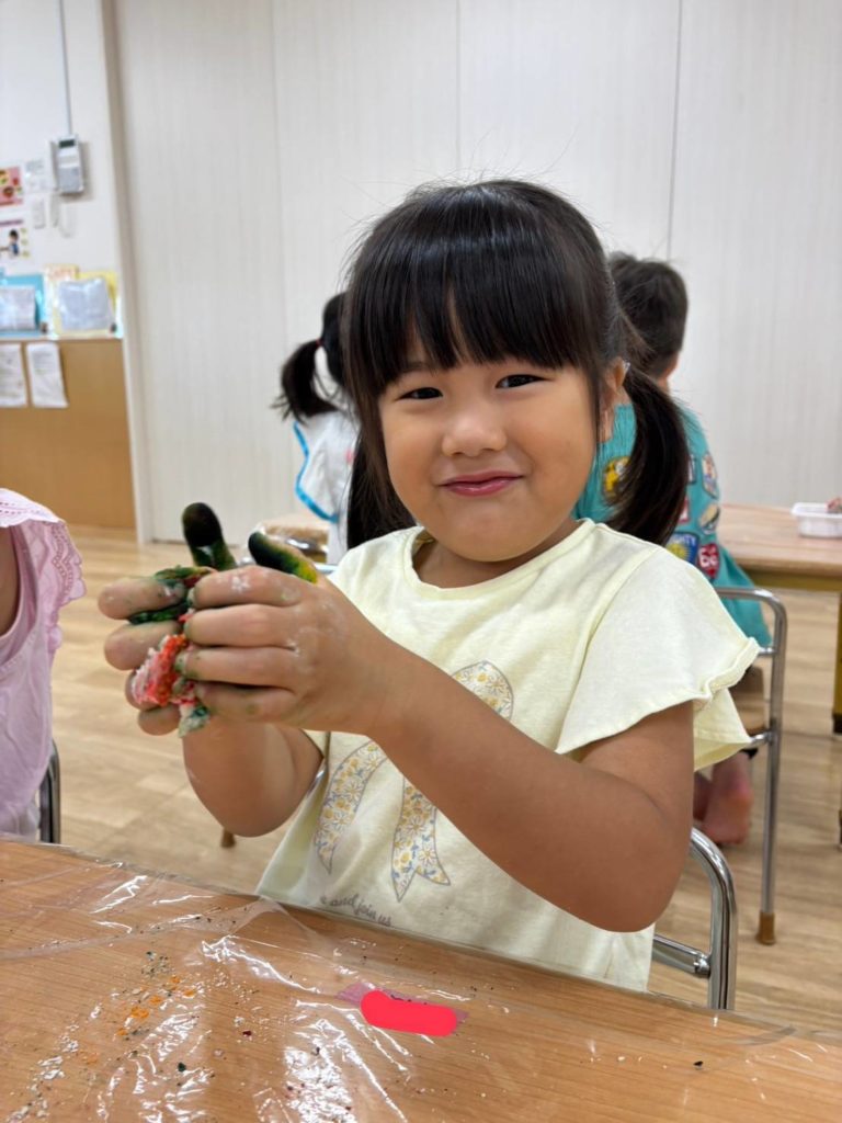 最後のしあげは子どもたち!感触を楽しみます♬