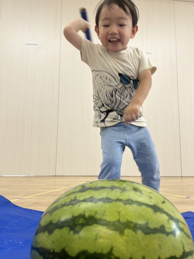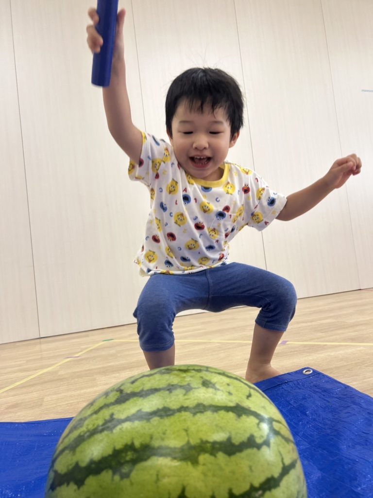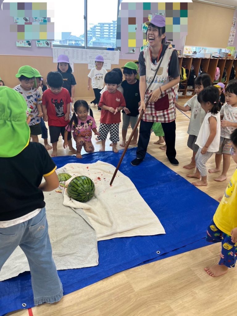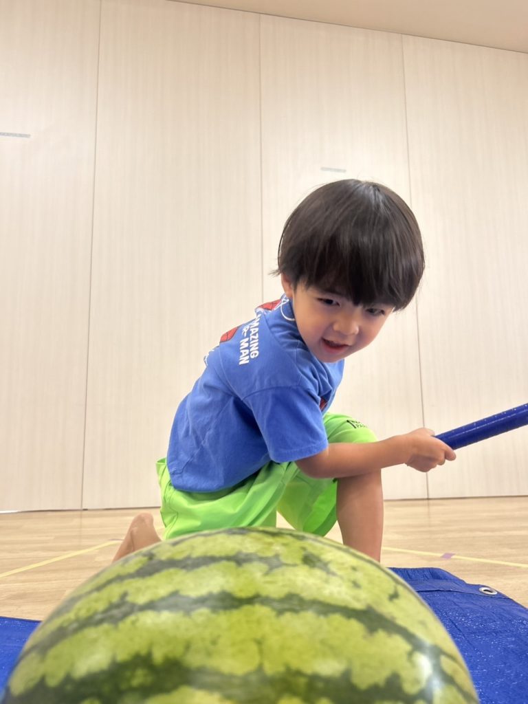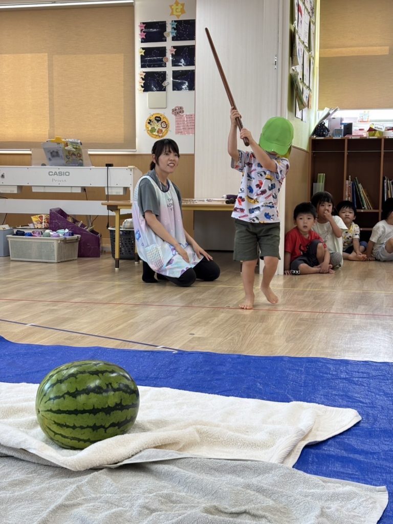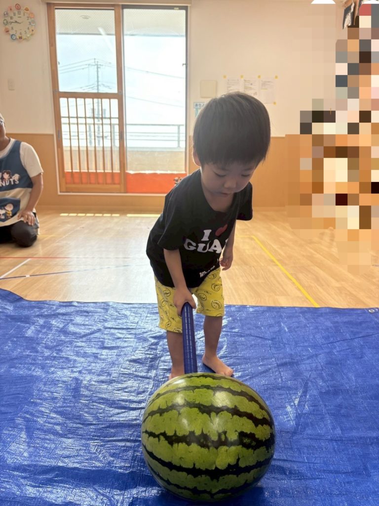 今日は、みんなが楽しみにしていたすいか割りです🍉
