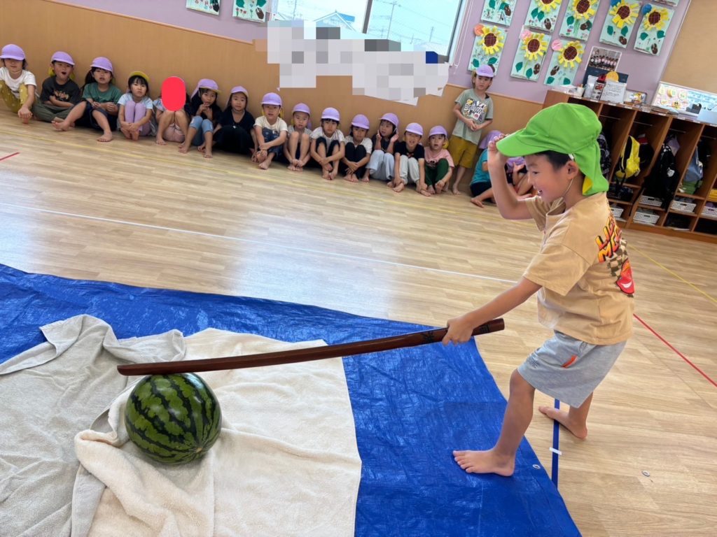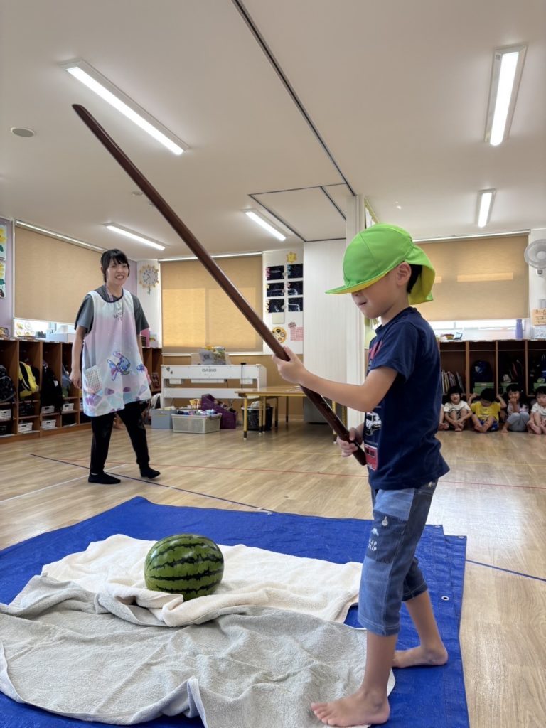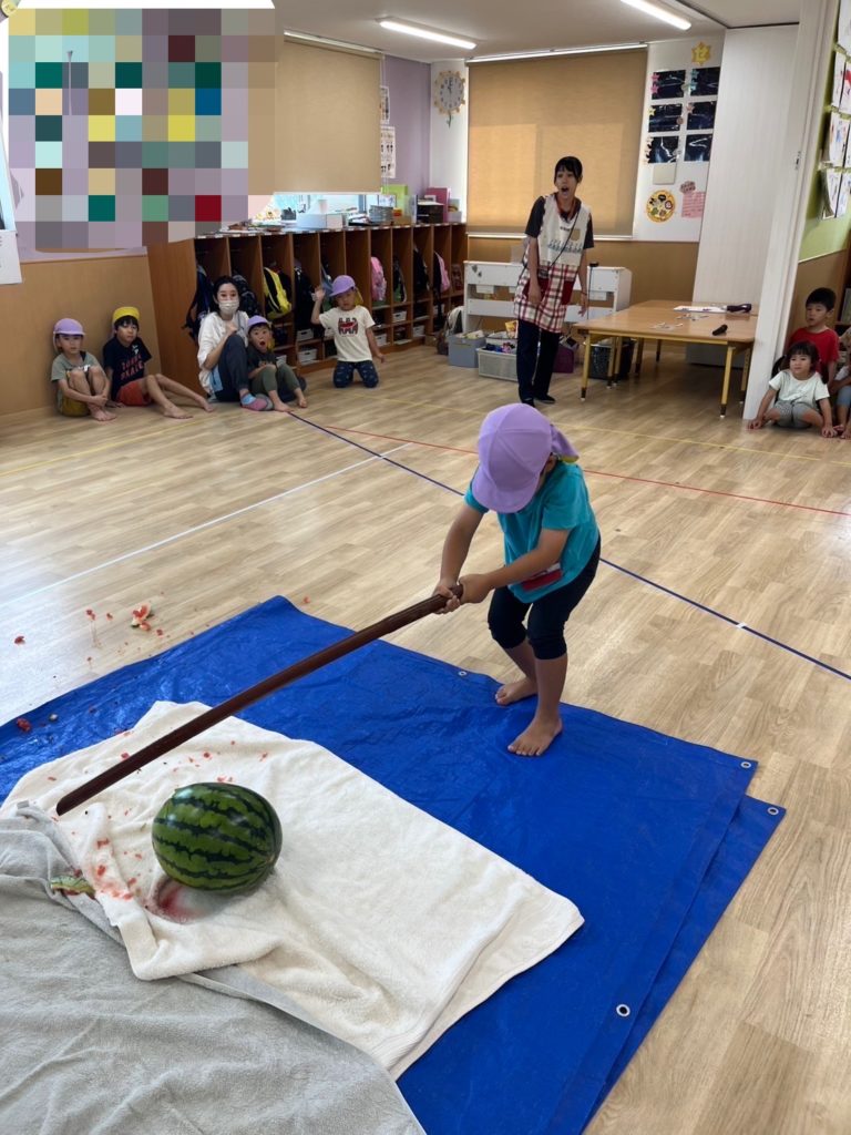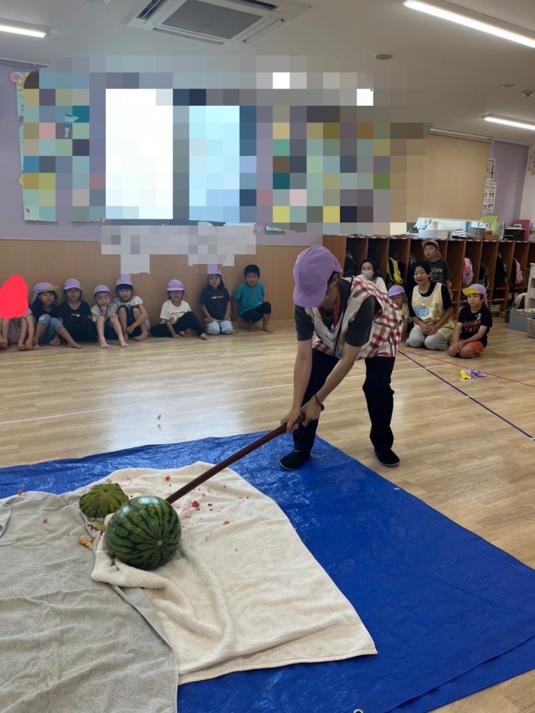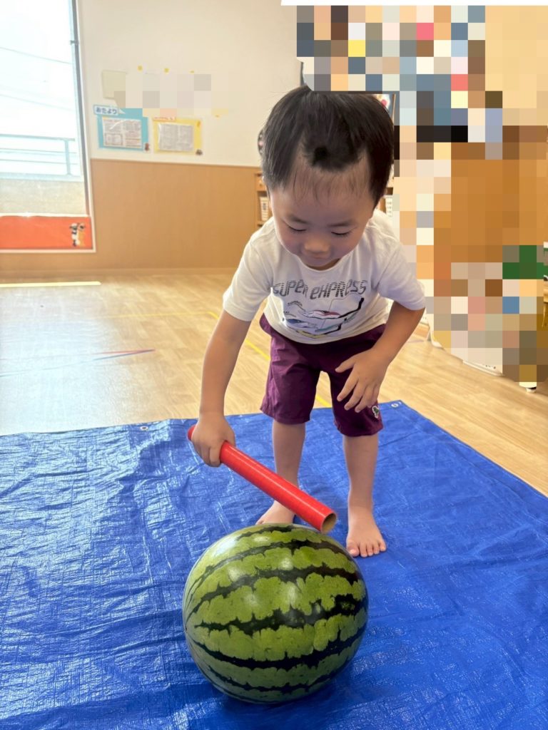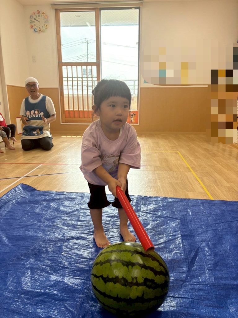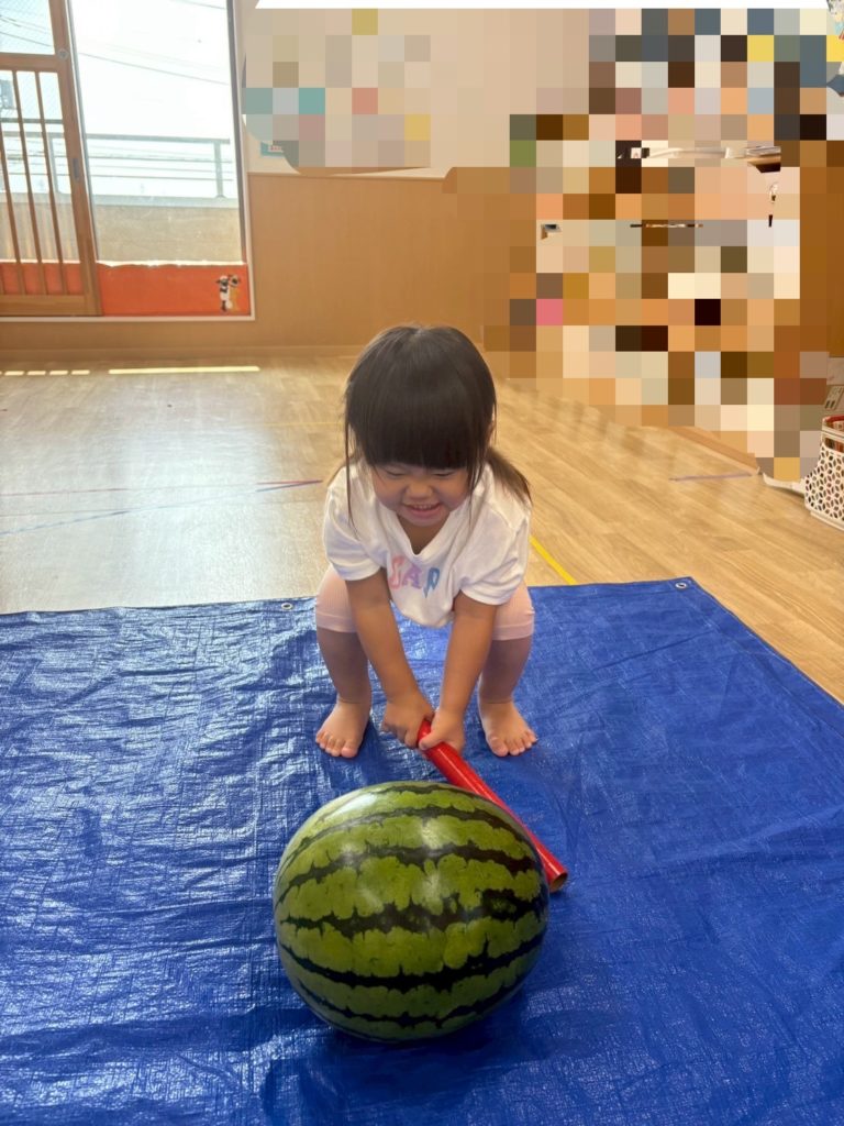 今日は、みんなが楽しみにしていたすいか割りです🍉