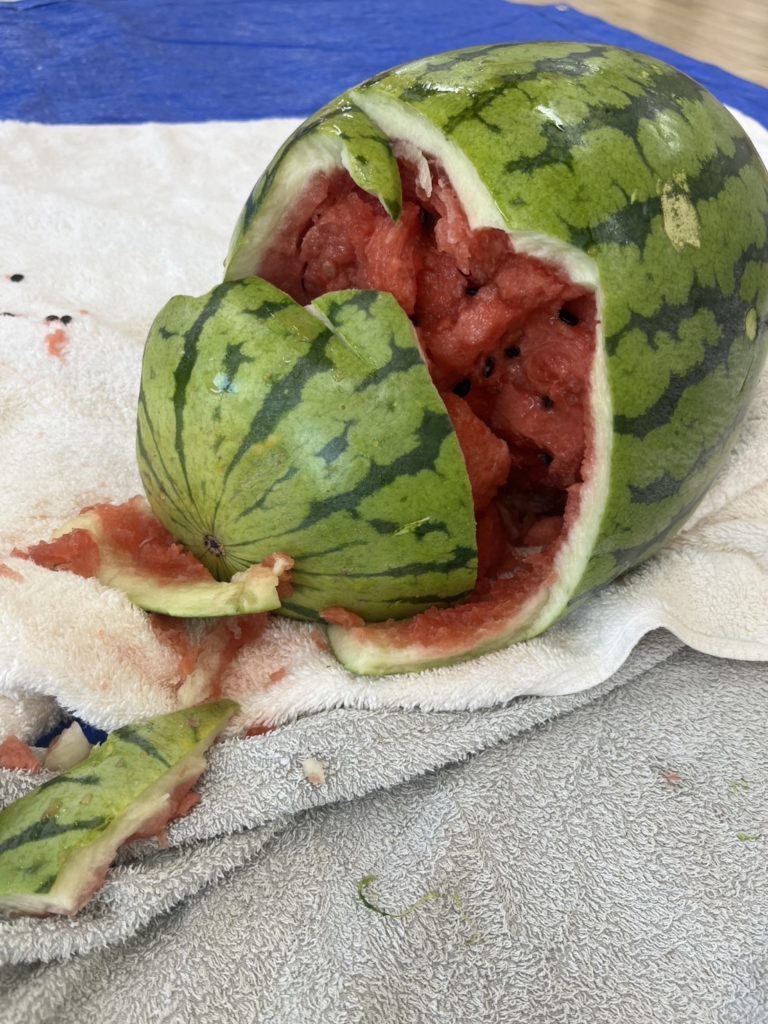 上手に何回もすいかを叩いていました!なかなか割れません・・(笑)