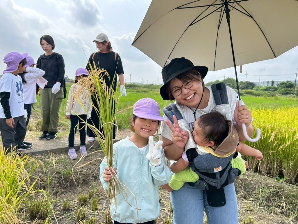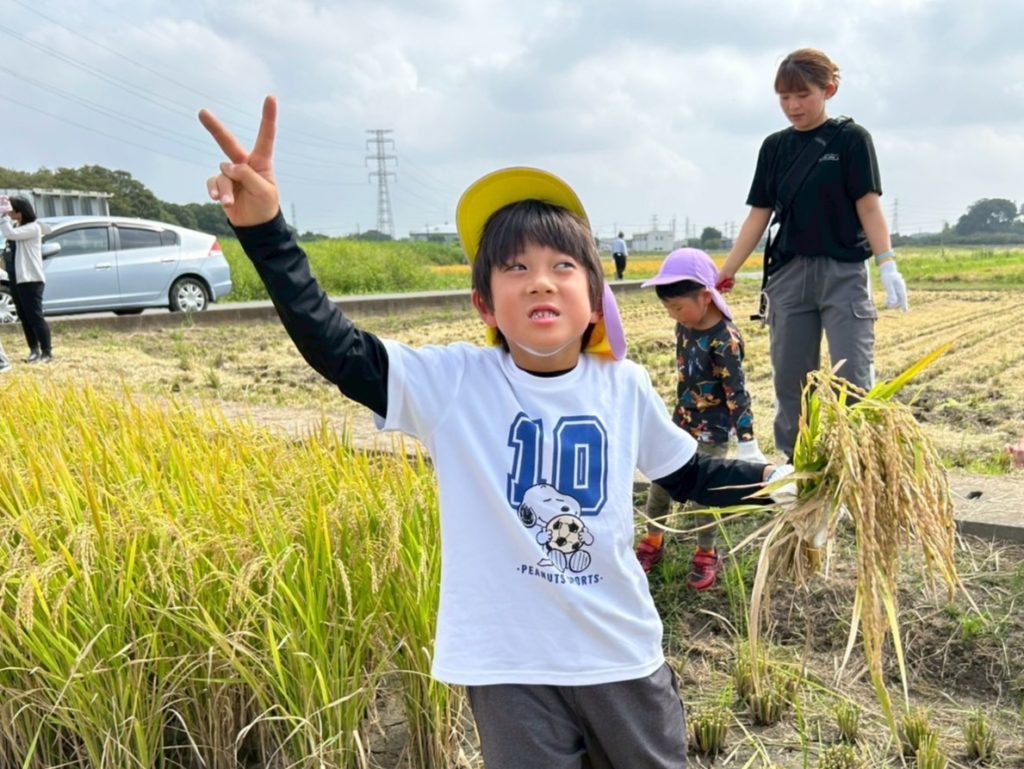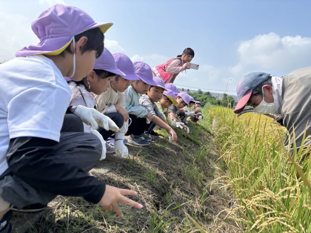 大きく育った稲を見てお友だちは大喜びです✨