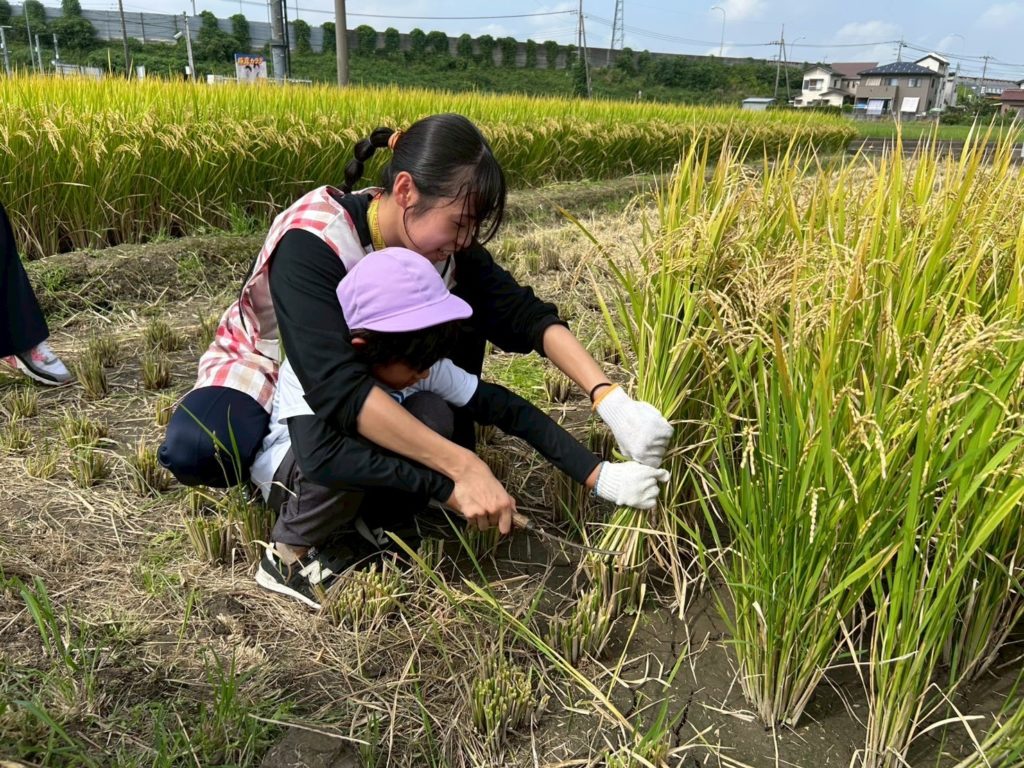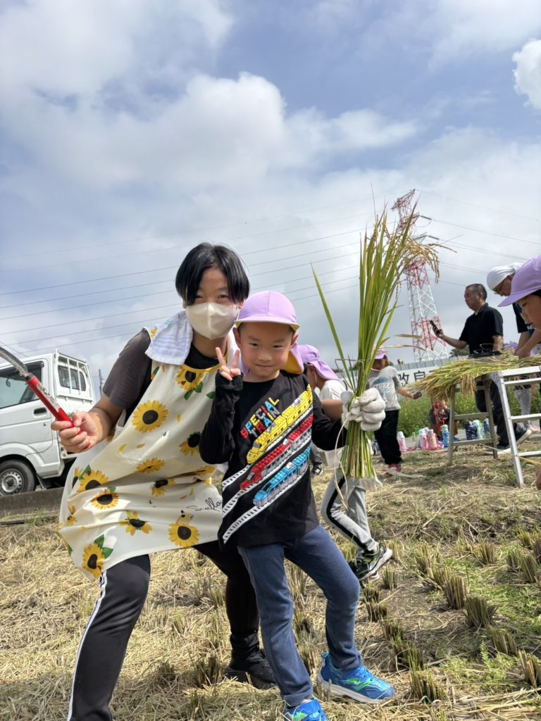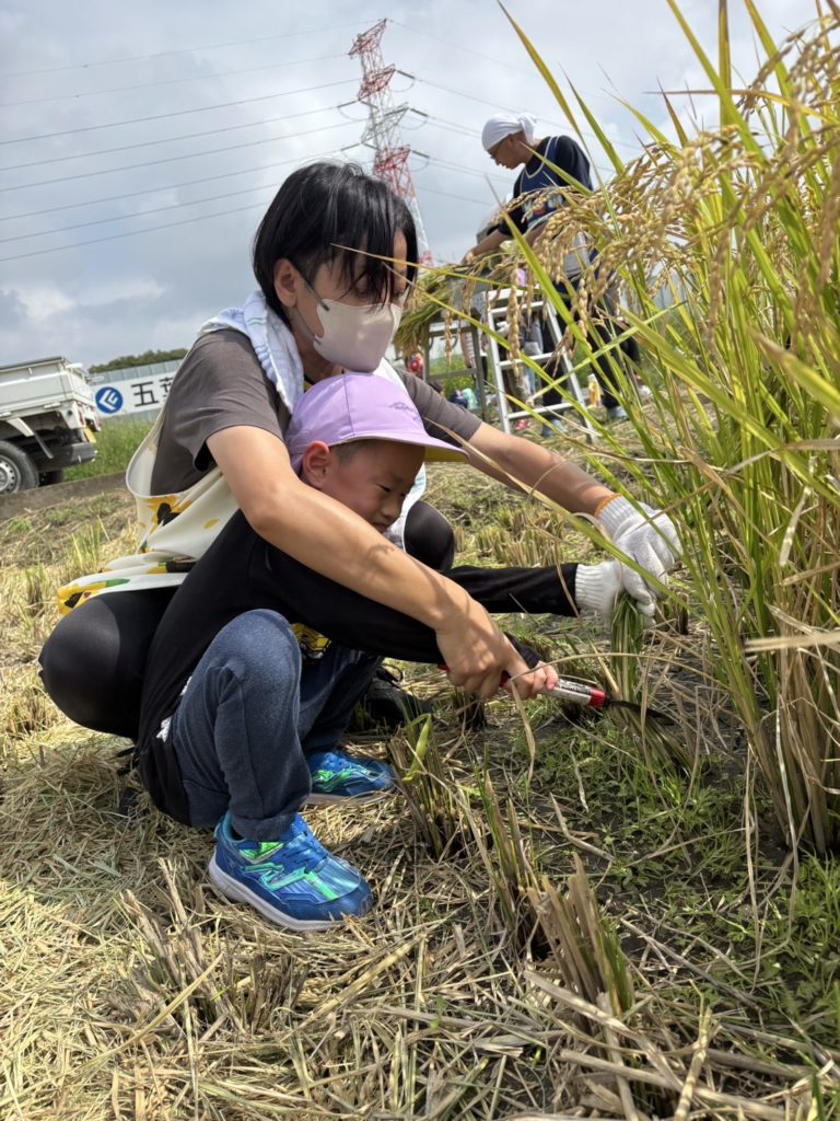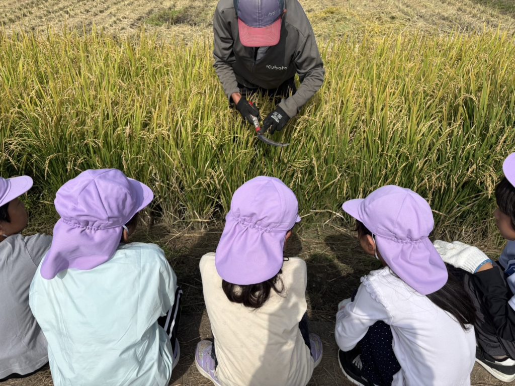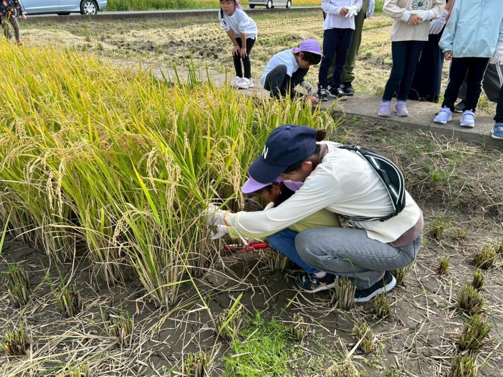 実際に稲刈りのやり方を見せてもらってから順番に行いました!