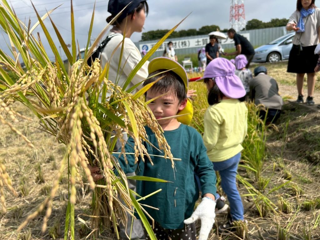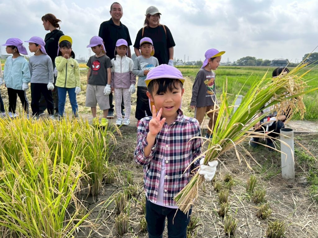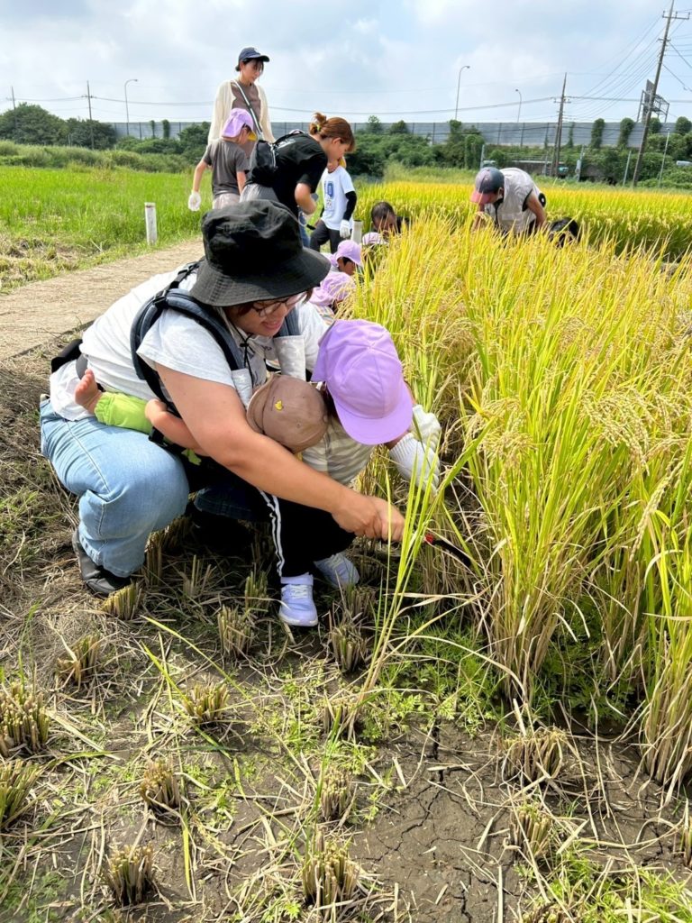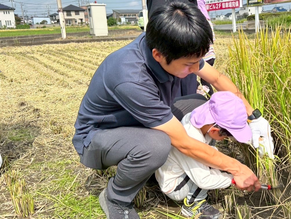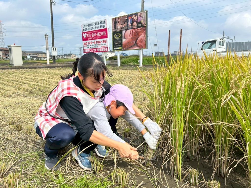 実際に稲刈りのやり方を見せてもらってから順番に行いました!