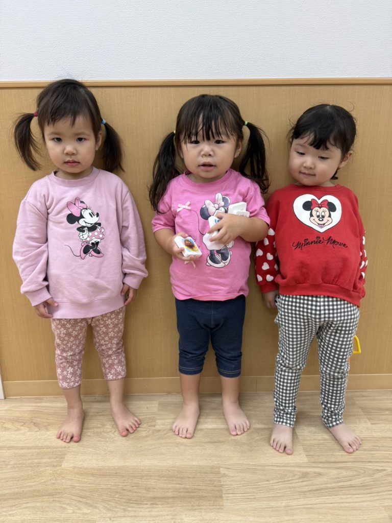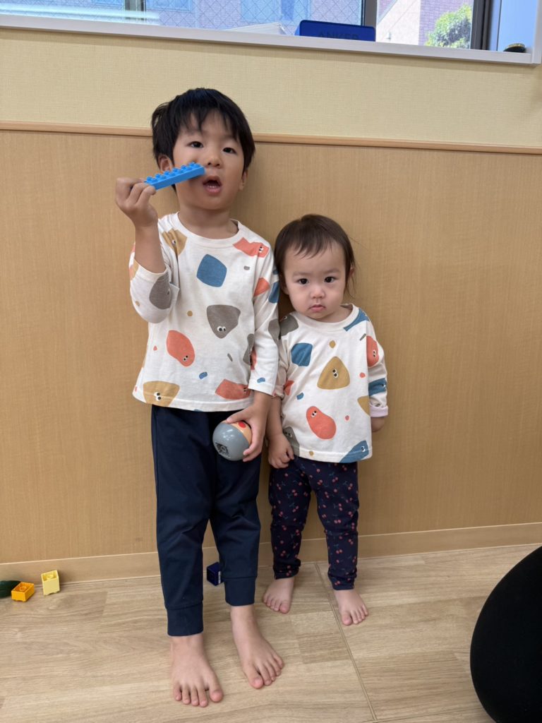朝の乳児クラス合同部屋で同じ服のお友だちが居たよ😁💗