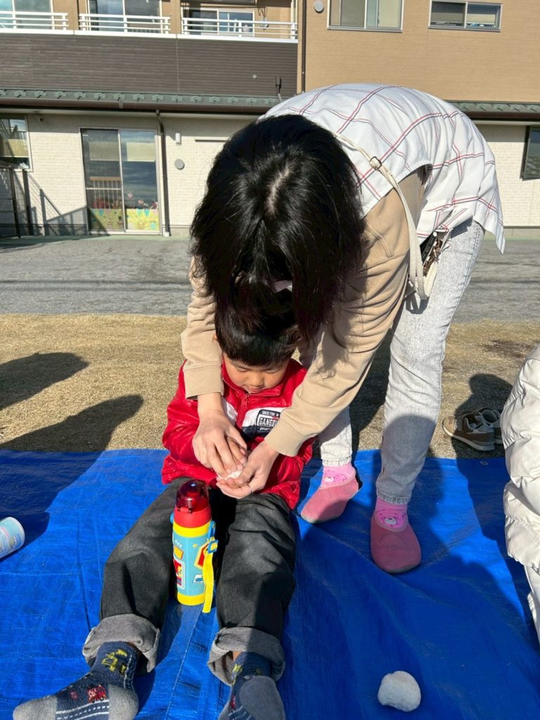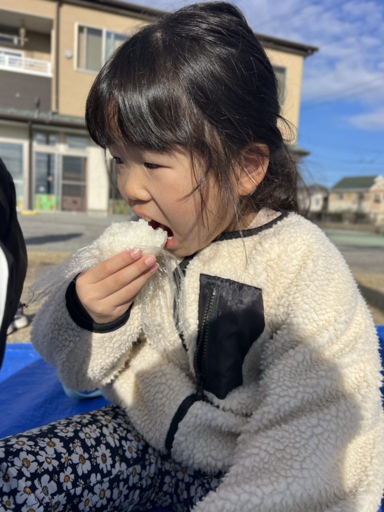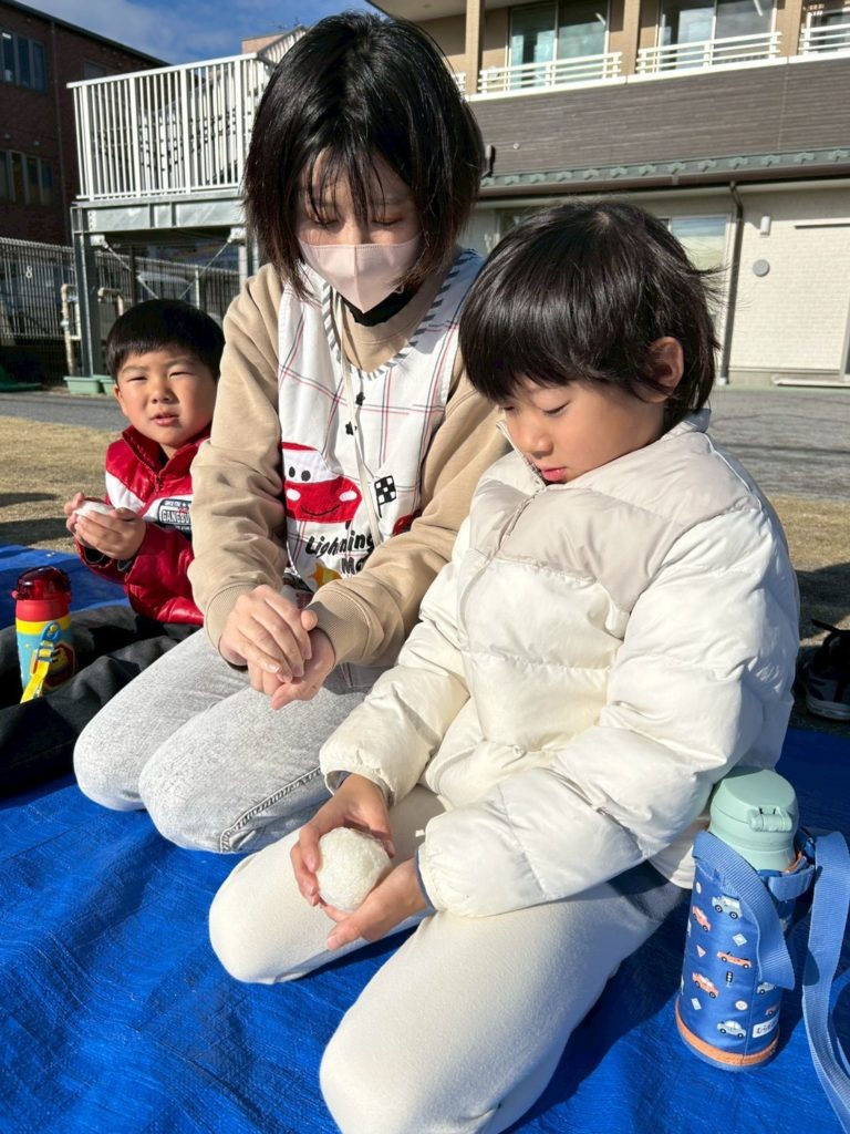 まずは、先生達から おにぎりの 握り方から教わります🍙