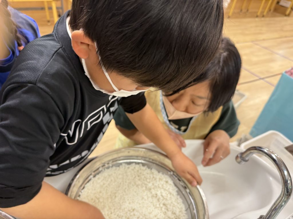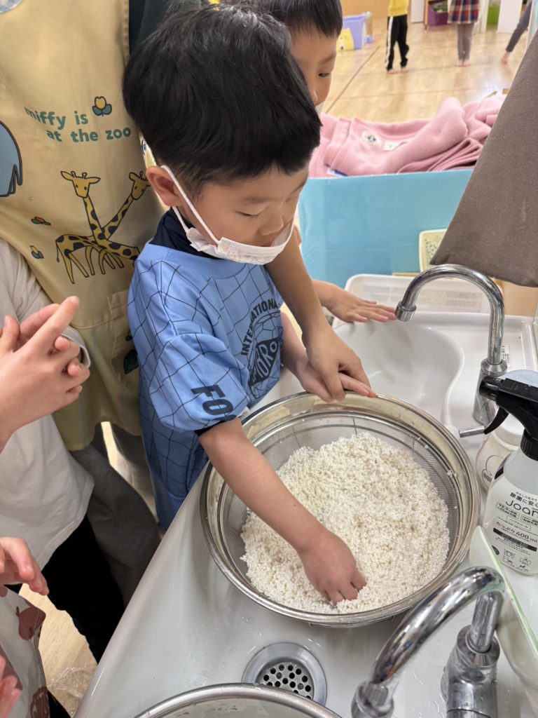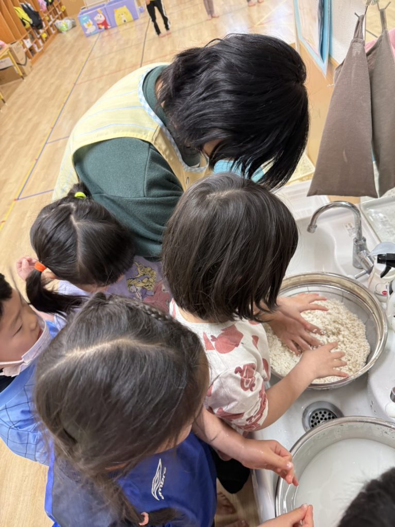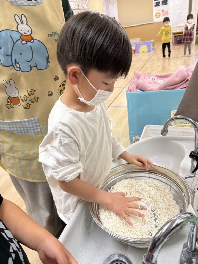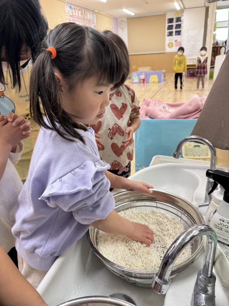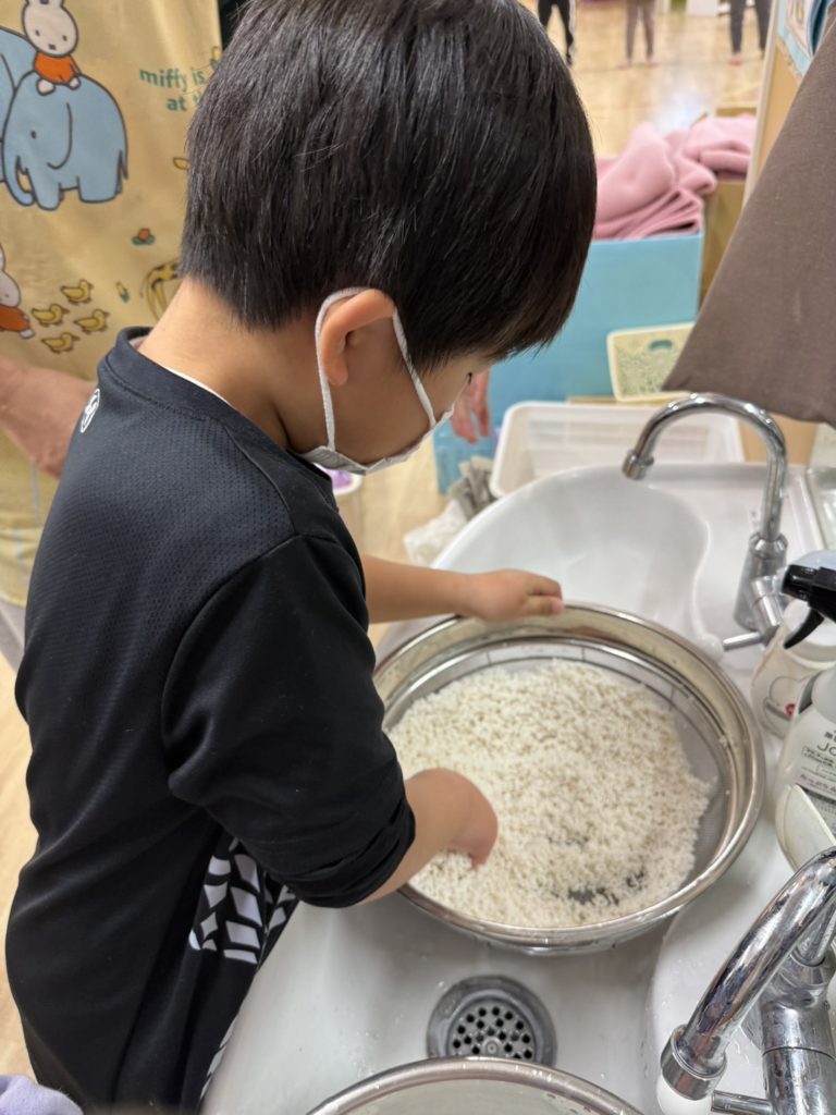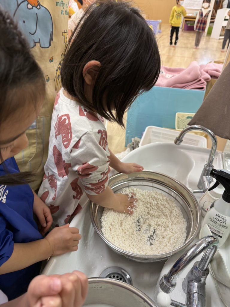 ゆめ組のお友だちはお米を研いで下準備です☺