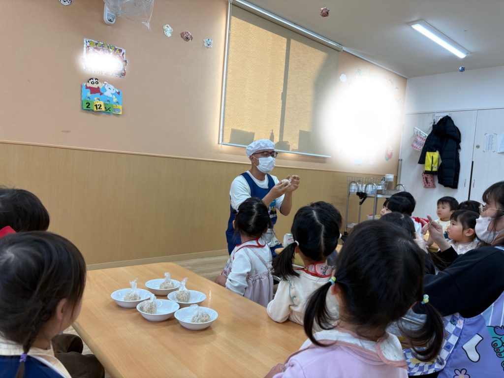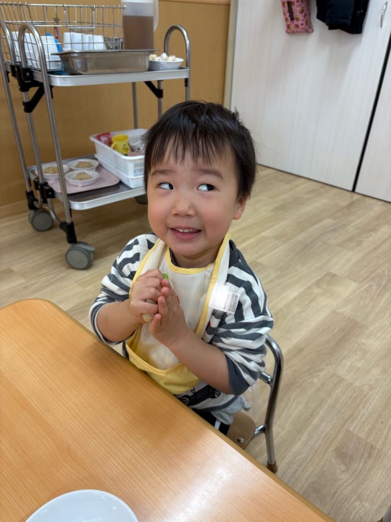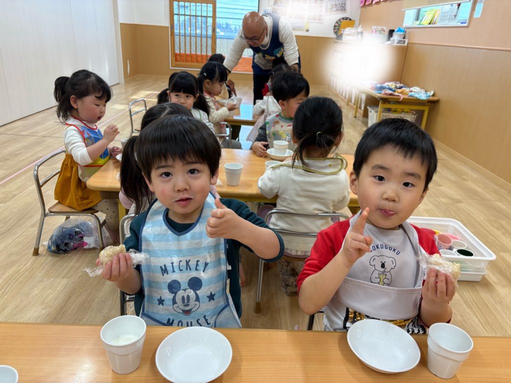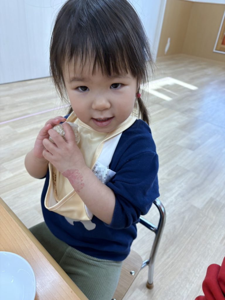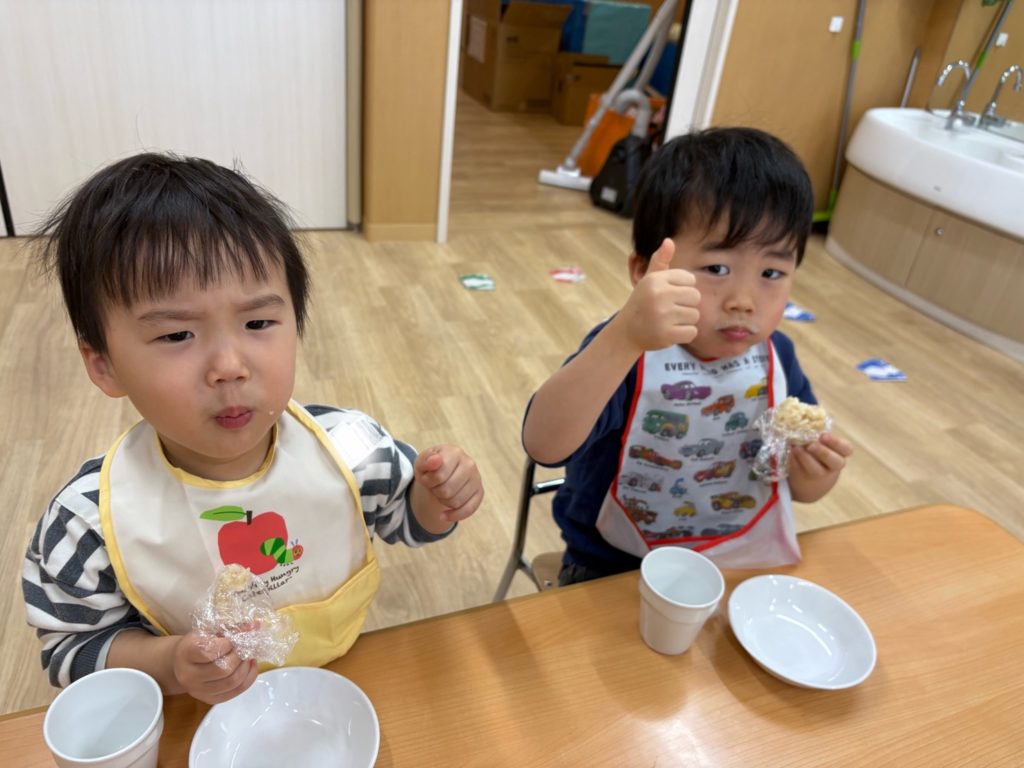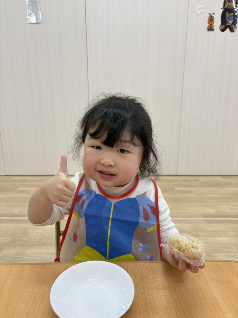 今日は、たいよう組のお友だちが おやつの時間におにぎりを握りました🍙