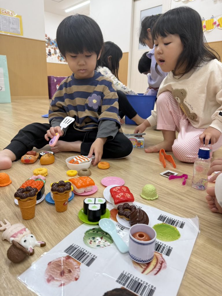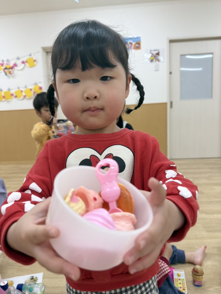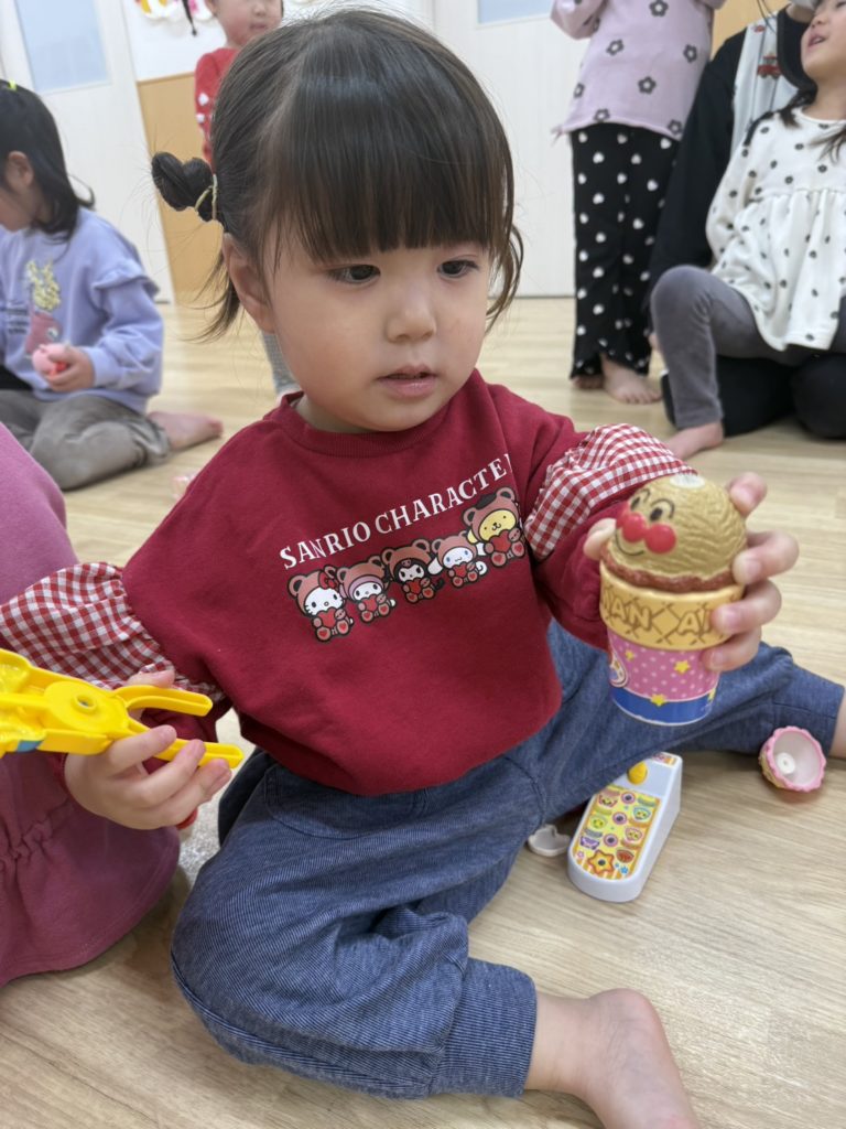 今日は、朝の合同保育の時間帯からアイスの玩具を出して遊びました😁