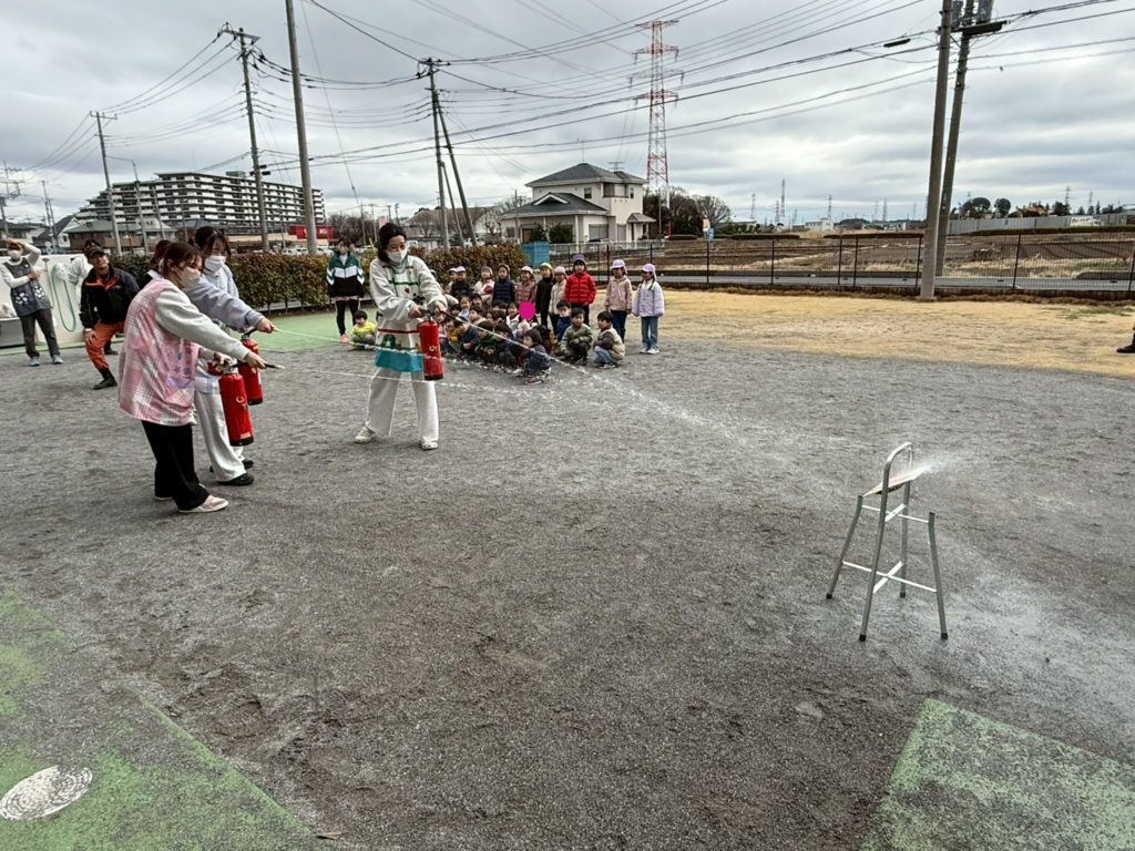 先週、消火器訓練があり、先生とゆめ組のお友だちが体験しました!