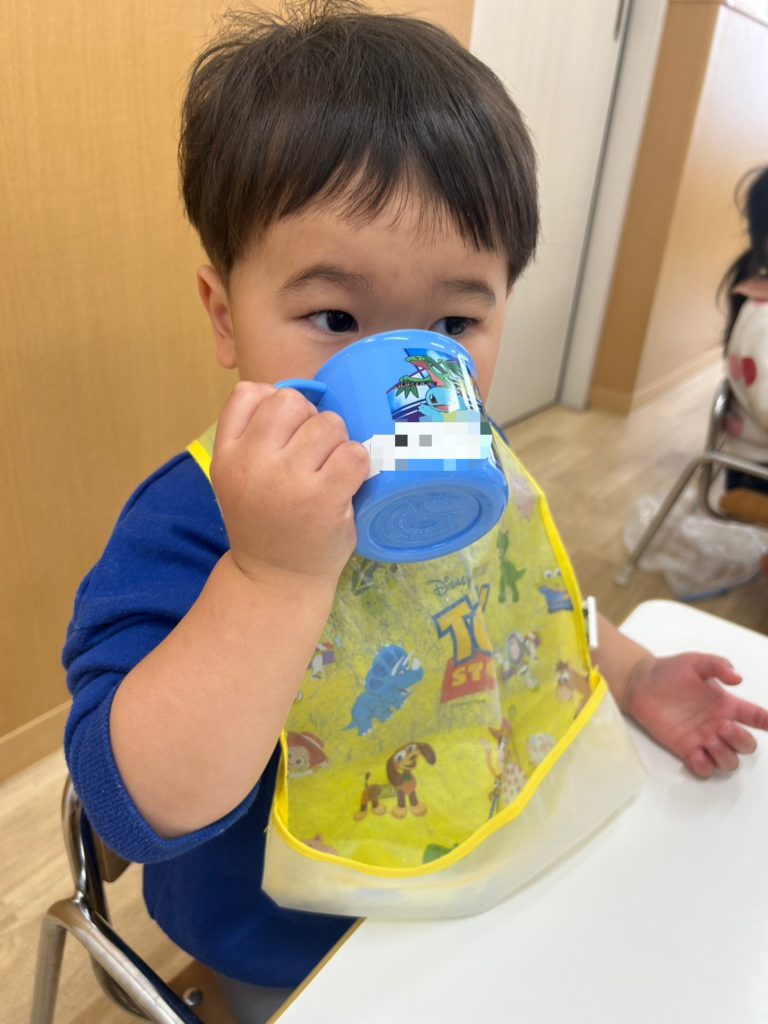 コップを持ってお茶を飲んだり・・・