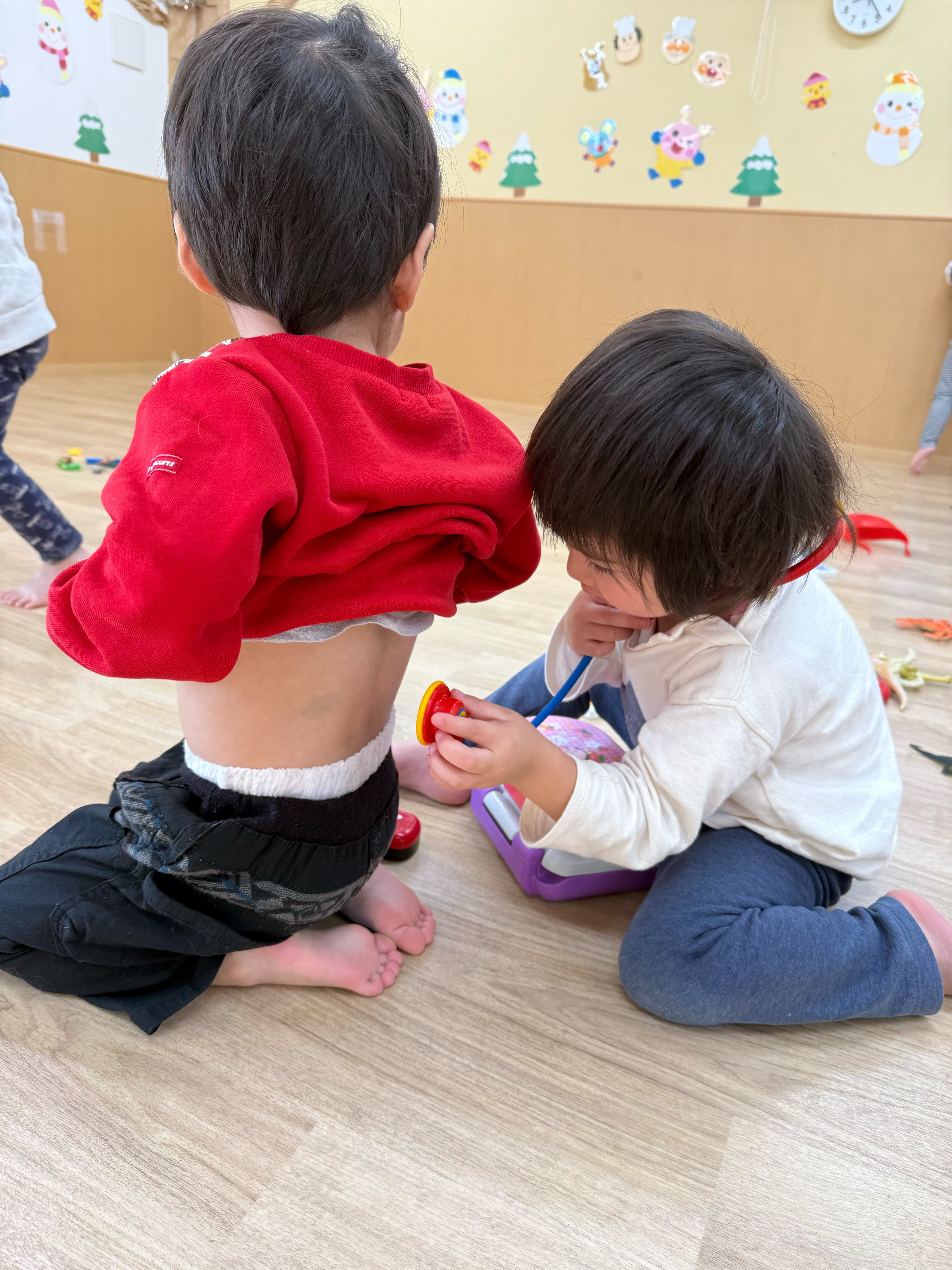 乳児クラスの合同部屋でお医者さんごっこが行われていました✨ どちらもお医者さんをやりたいようなので、仲良く順番 […]