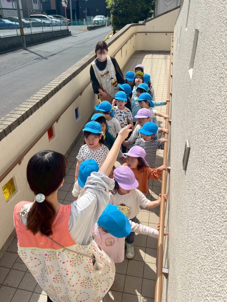 お友だちと手をしっかり繋ぐこと