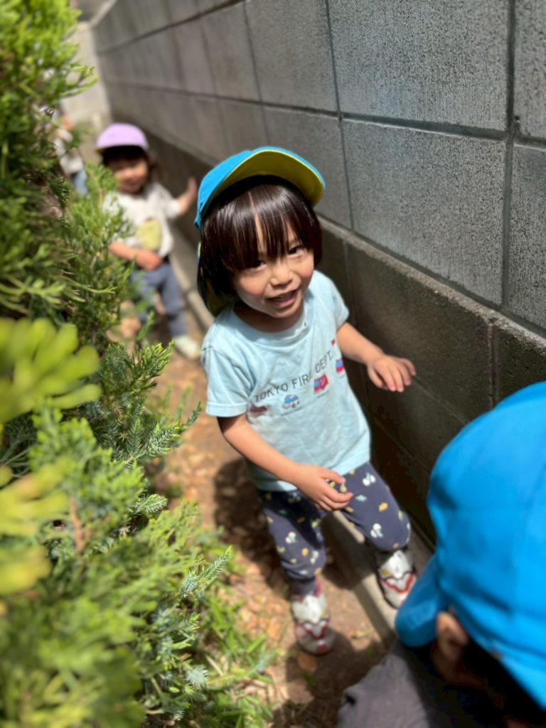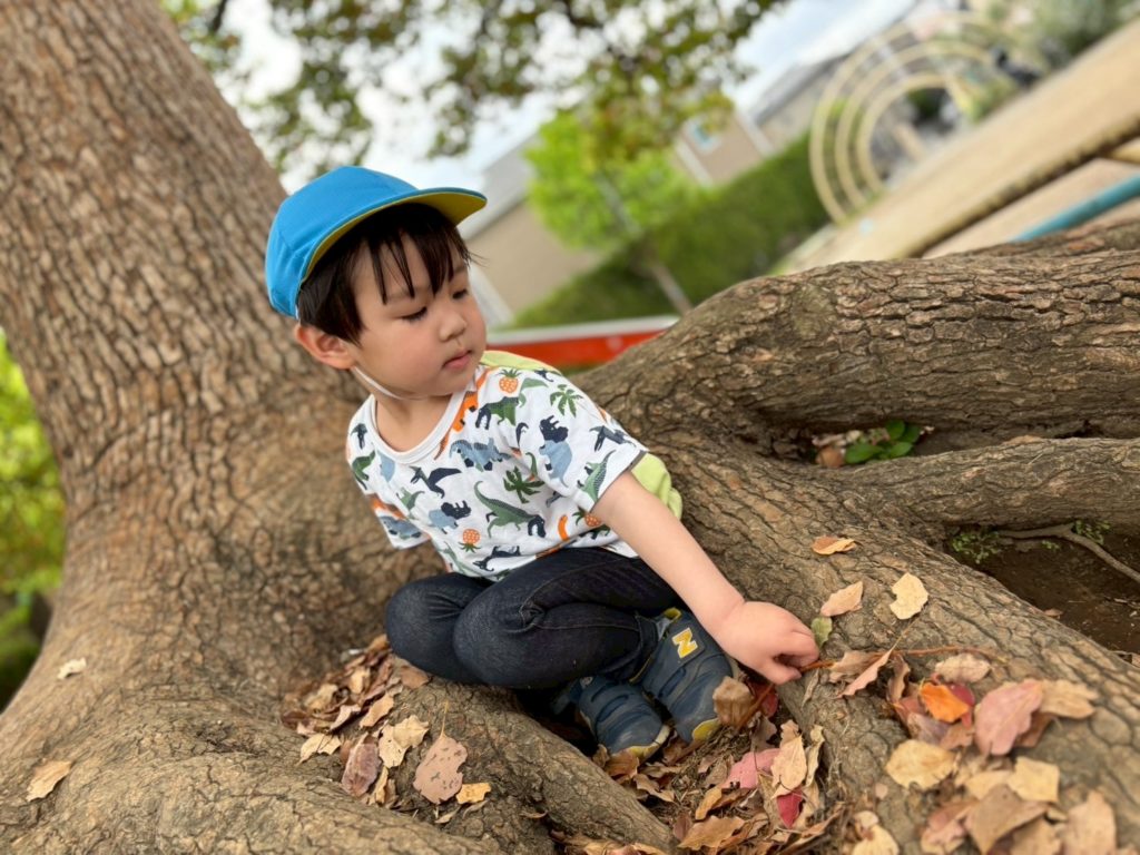「木の裏を探検だー!」