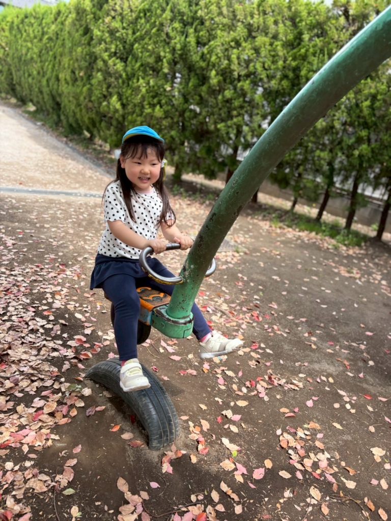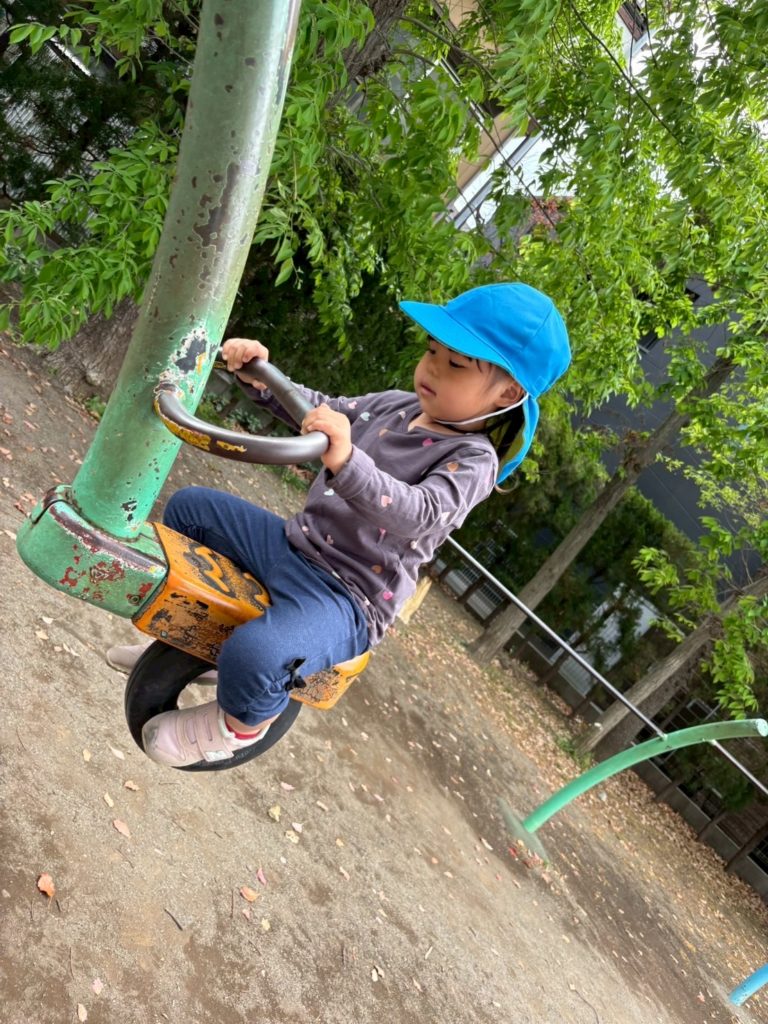しっかり座って、ギッタンバッコン楽しいな〜