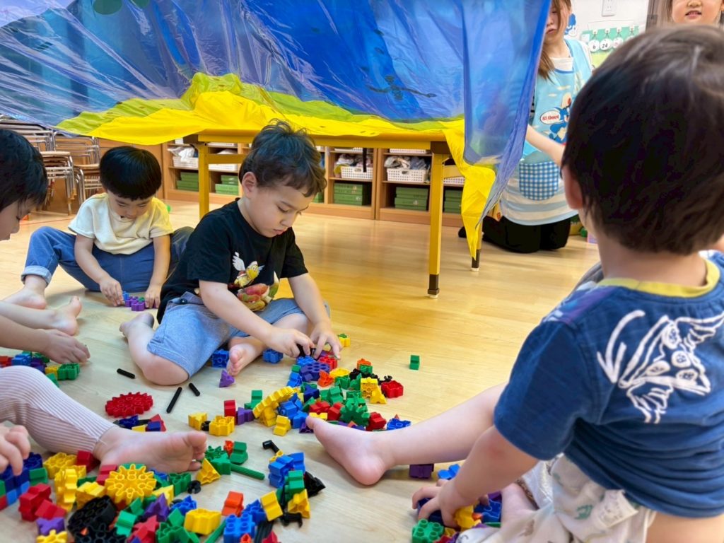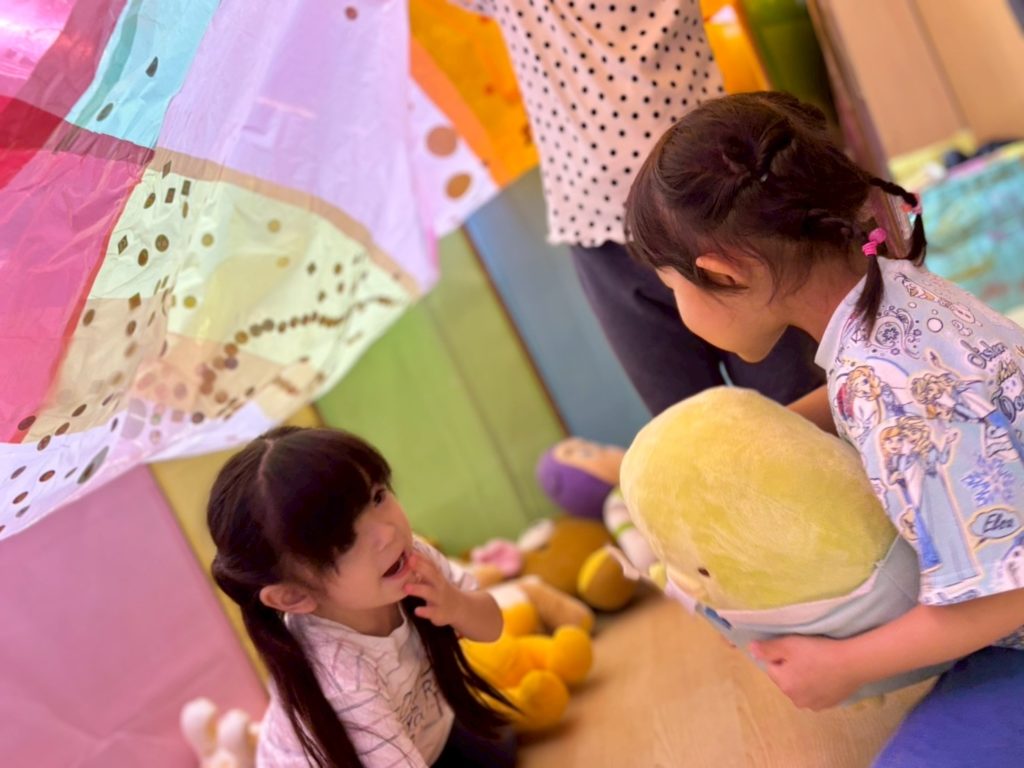 かもめ組の部屋に、あざらし組のお友だちがやって来たよ。