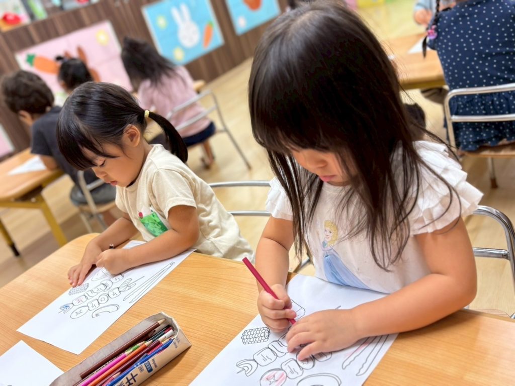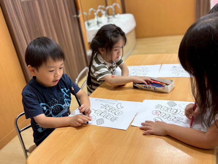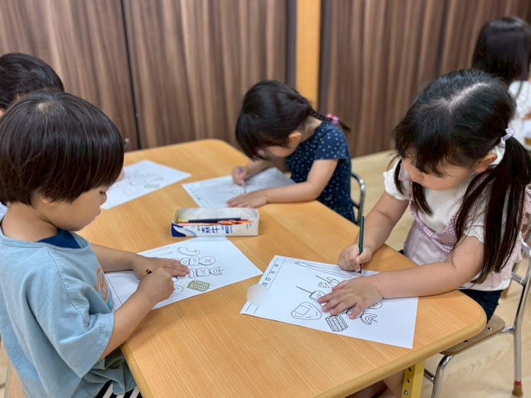 かもめ組のお友だちは、仲良く塗り絵に挑戦中。