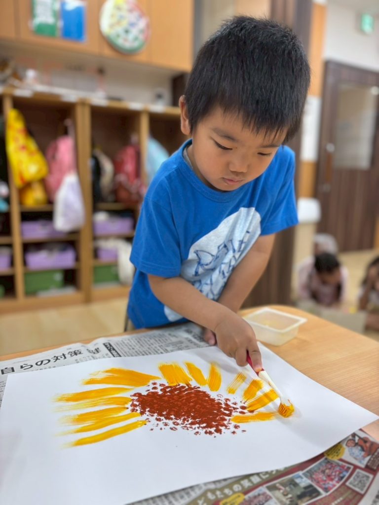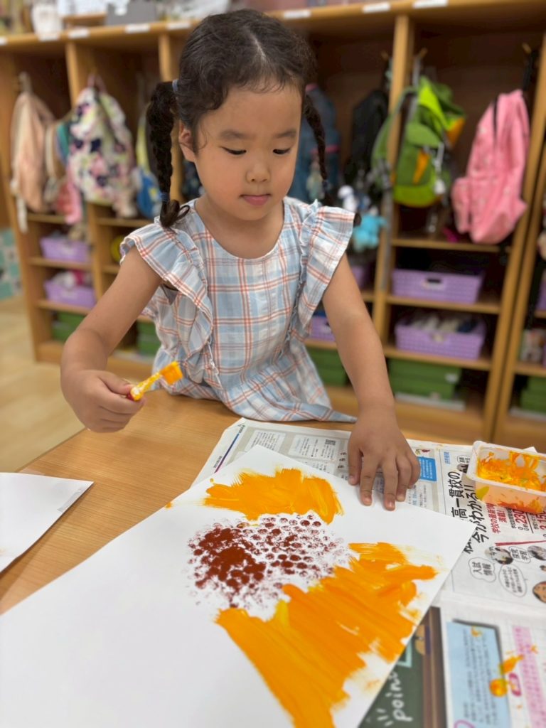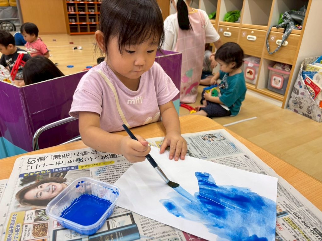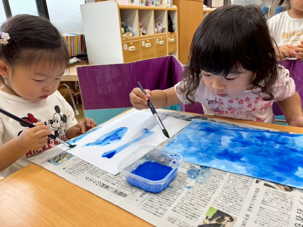 あざらし組は、筆で絵の具を塗ってみたよ。