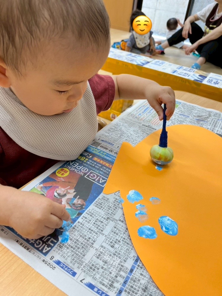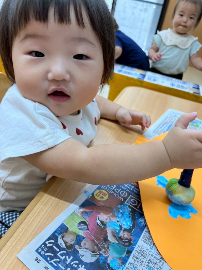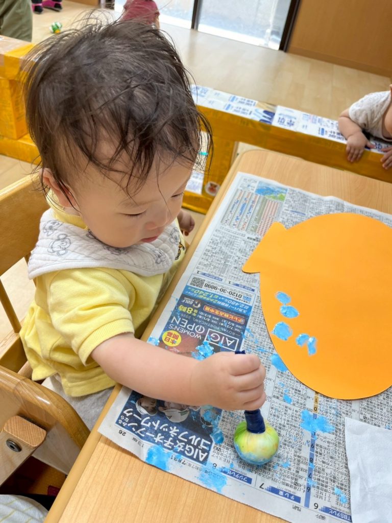 画用紙に、タンポでスタンプするよ。