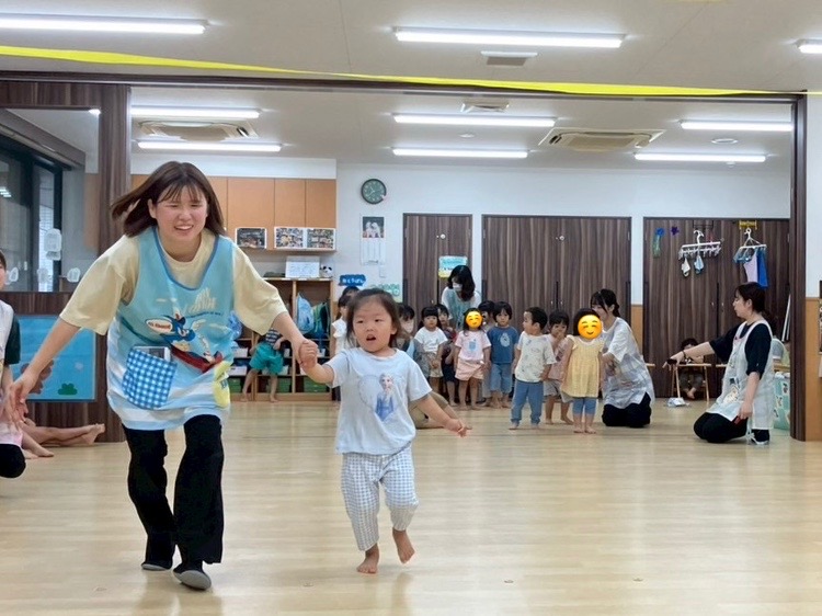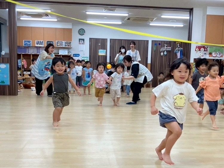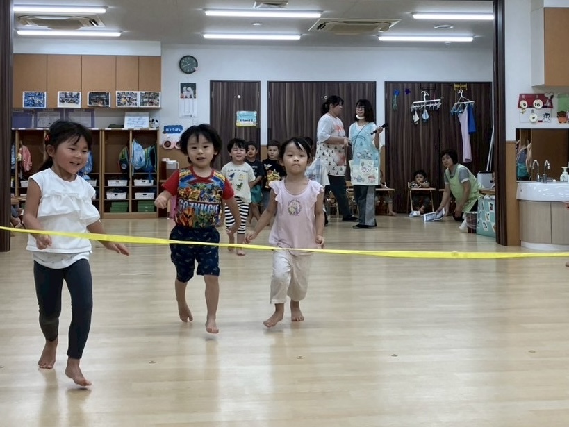 かもめ組のお友だちは、あざらし組のお友だちより足が速いね!
