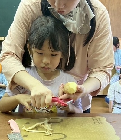 部屋に移動して、味噌汁作りのために野菜の下ごしらえをしていくよ。
