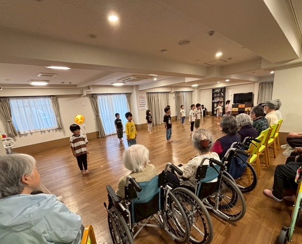 今日は、保育園の上の階にいる、おじいちゃん・おばあちゃんのところに遊びに行ったよ。