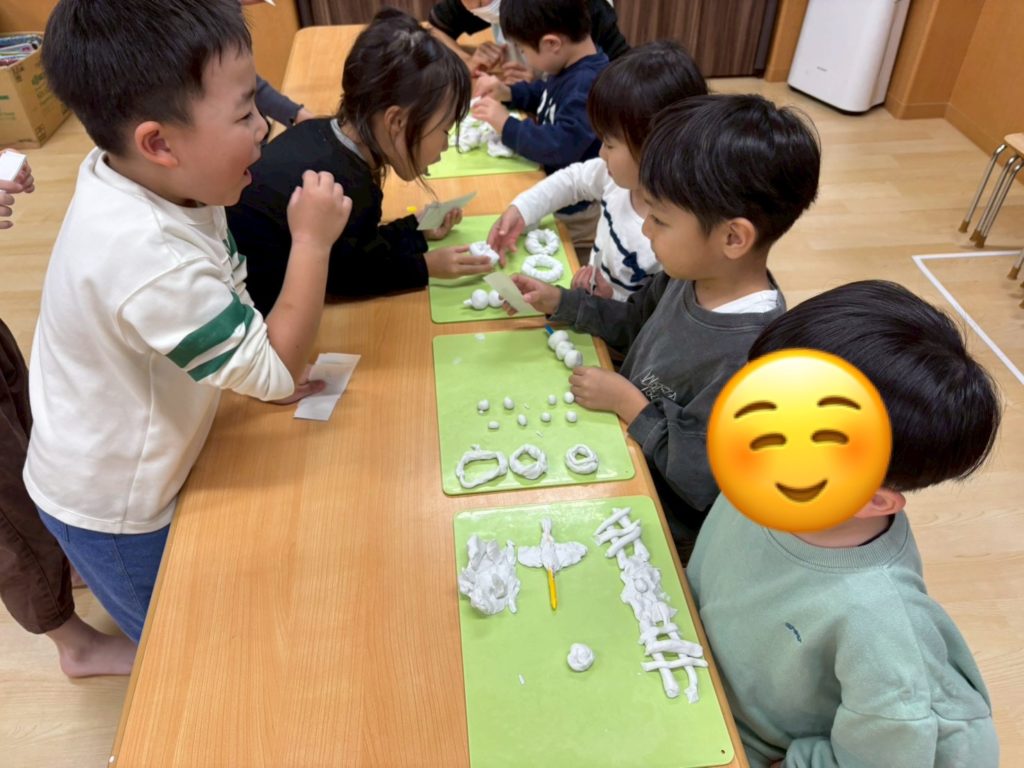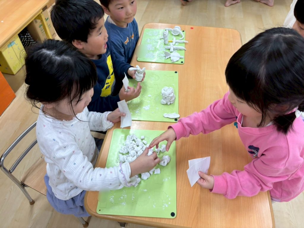 いるか組とくじら組は、一緒に粘土遊び♪