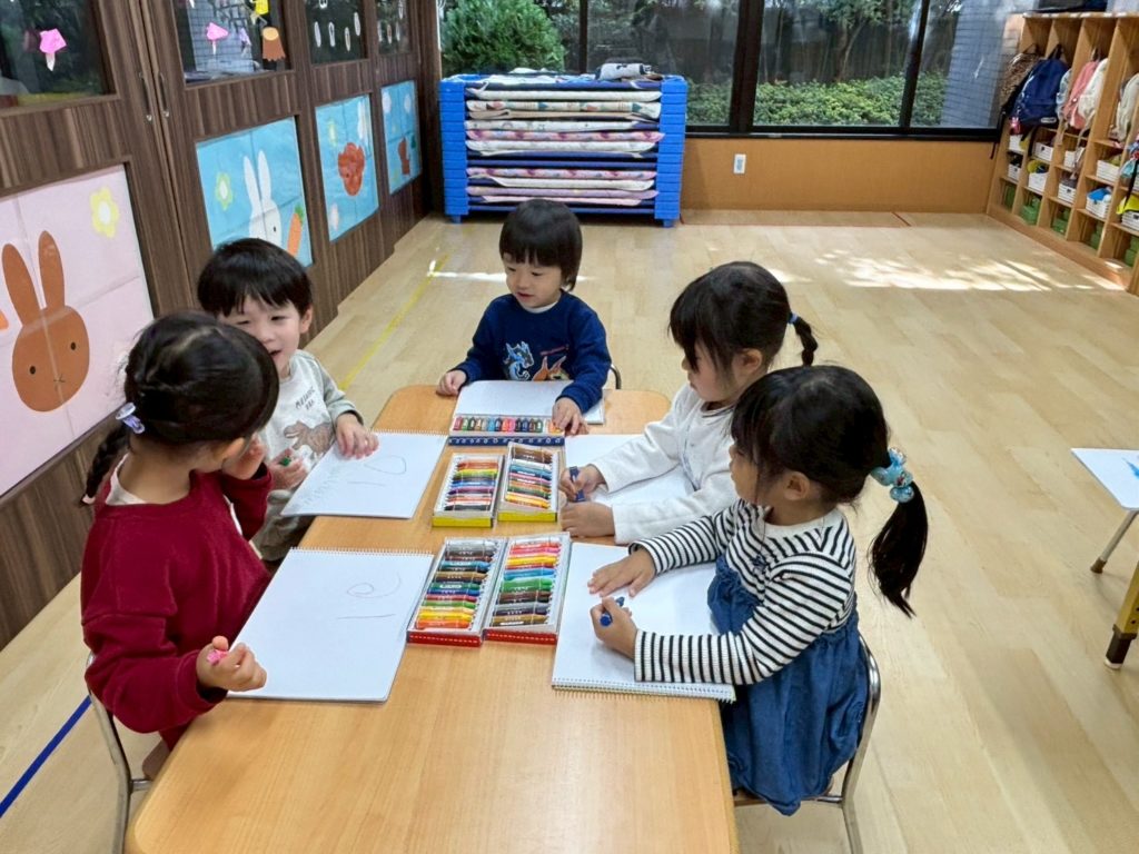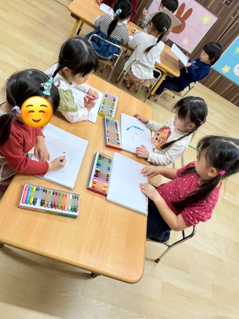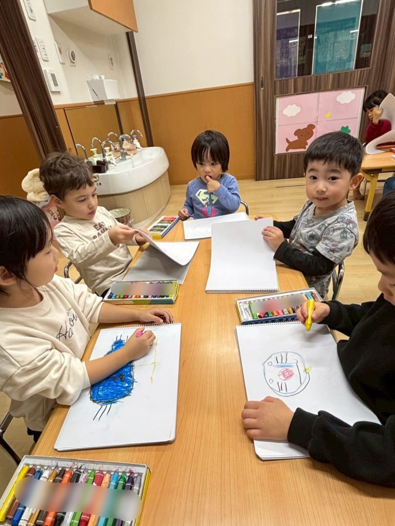 かもめ組は、初めて自分たちの自由画帳にお絵描きをしたんだ。