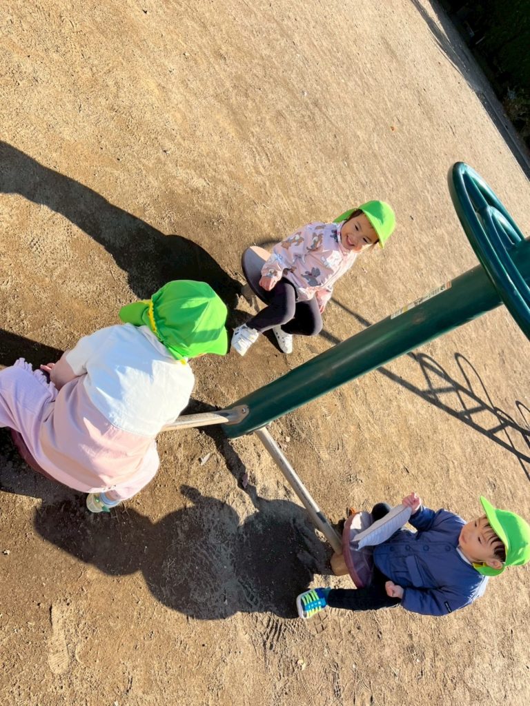 らっこ組とぺんぎん組のお友だちは、仲良く散歩に出発。